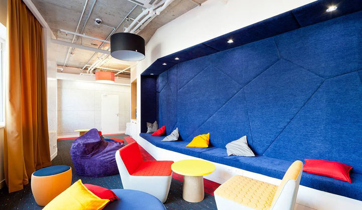 超级英雄与街头涂鸦艺术竟然出现在银行的办公环境里,是不是太令人惊讶了!没错,由建筑设计公司IND Architects 为俄罗斯Alfa(阿尔法)银行的一处支行所做的室内设计,其令人不可思议的大胆创新,刷新了人们对金融行业办公空间的认知。动感、色彩、活力、趣味图形、创新且多元实用的办公空间,Alfa银行电子商务实验部门的年轻雇员将非常乐意在这样的环境里办公。