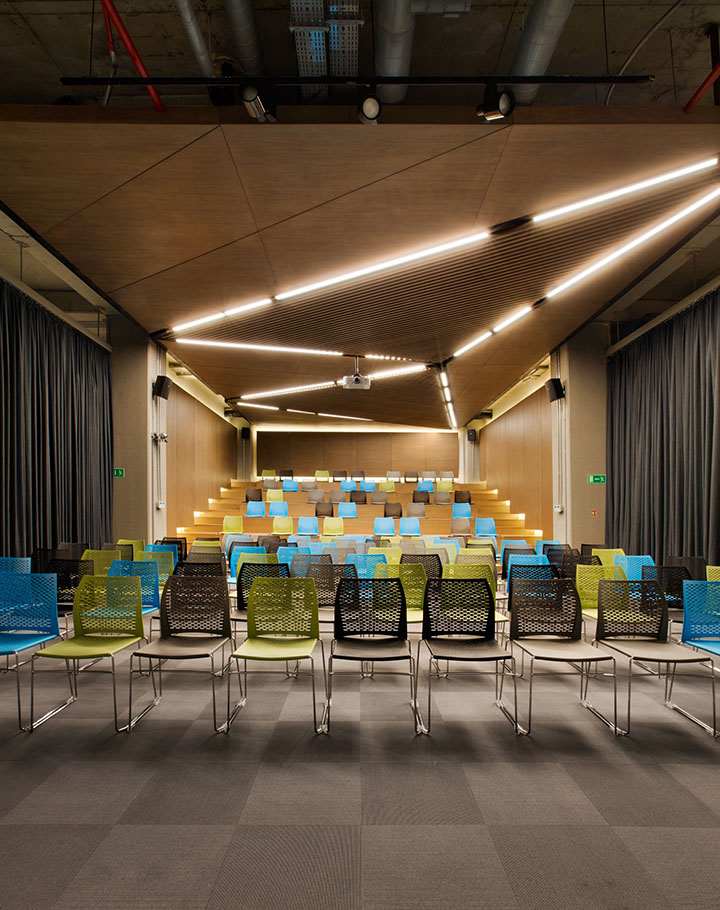 Mimari工作室按照自己的成功经验来设定室内的照明设计标准。所有的照明均是LED光源,工作空间选用点光源配合线性光源照明。在开放空间,可以看到不同规格和形式的特色灯具装饰,其中一些灯具还具有声学方面的优势。精彩纷呈的灯光照明设计丰富了整体空间的视觉效果,在流光溢彩中体验令人惊叹的空间之旅。
