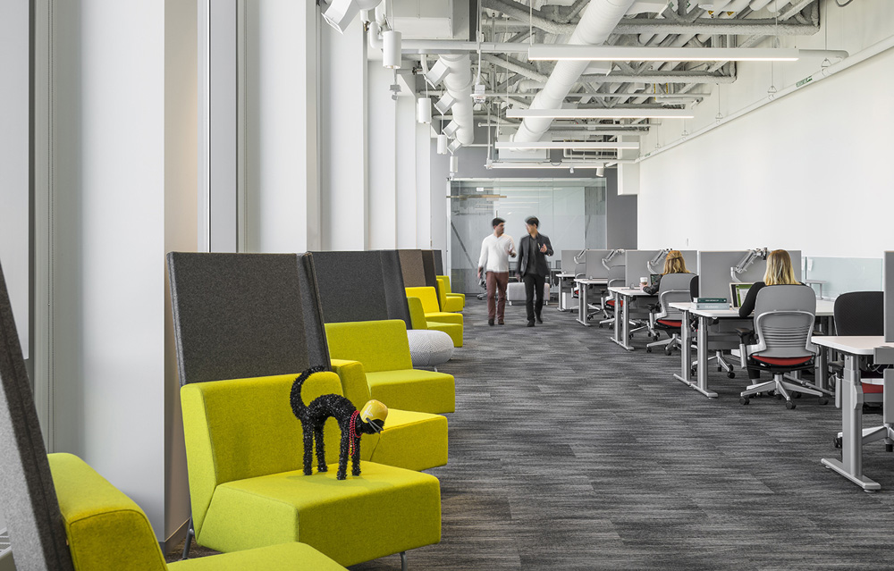 日本武田制药(Takeda Pharmaceuticals)是一家自主研发、并在全球制药和消费者保健行业居于领先地位的跨国集团,总部位于大阪。秉承“为世界人民的健康和健康的生活做贡献”的经营理念,致力于药品的研究开发,公司在日本、美国和欧洲先后建立研发中心,营销网络遍及欧洲、美洲、亚洲的主要国家。本案是武田制药位于美国剑桥的新办公室,由著名建筑事务所Perkins+Will (帕金斯威尔)设计团队倾力打造。