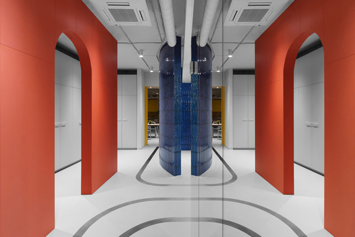 强烈的色彩与形式的应用组合,独特的环境导视系统图形设计,宁静的私人领域和轻盈的中性调休闲空间,在设计团队的精妙组织下,呈现出一个时尚、灵动、又令人愉悦的创新工作环境。
