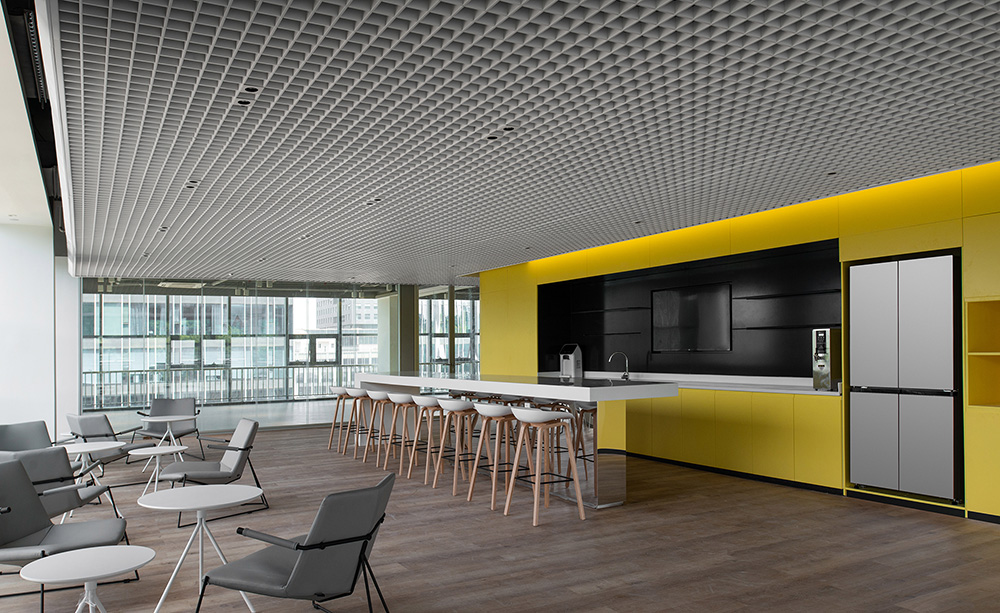 茶水休闲区位于山景一侧,景色宜人休闲放松,近核心筒卫生间的同时又可让楼层两侧员工便捷到达。