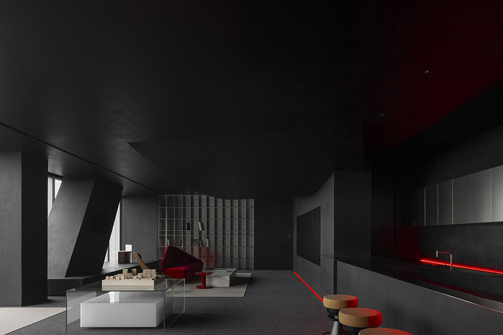 在空间的感官上,我们想在瞬间中创造一个异界,而这个瞬间在人与行为的参与下才变得完美,一种非计划性的完美;而这种非计划性,又是人为的秩序是让空间的性质,因为时间与人的关系在产生变化;这种变化未知的状态也是艾克建筑一直在探究的。