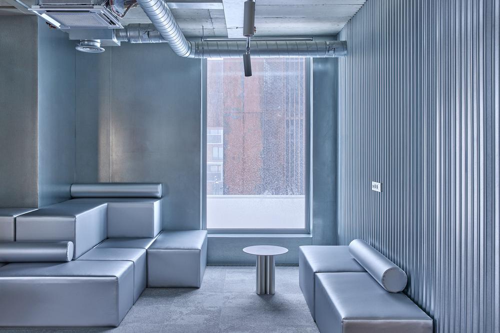 休闲区给我们的印象应该是柔软质感的,但这里像是使用了不锈钢质地的硬质家具,似乎不太友好,当你疑惑地坐上去时,你才明白,不锈钢质感只是一种视觉假象。