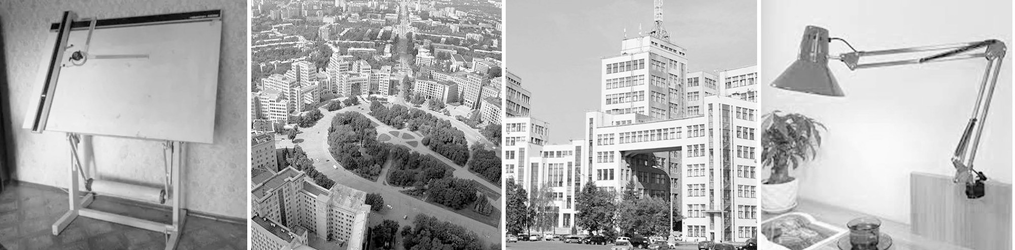 这一间以德兹普罗姆(Dezhprom)建构主义为主题概念设计的会议室,有许多工程师仍旧在他们的工作中有使用绘图板的习惯。这里就像是一个设计工作室,配以工作灯、还有这座城市的模型。绘图板的支架成为桌子的支架,而绘图板则变成透明亚克力的基底。