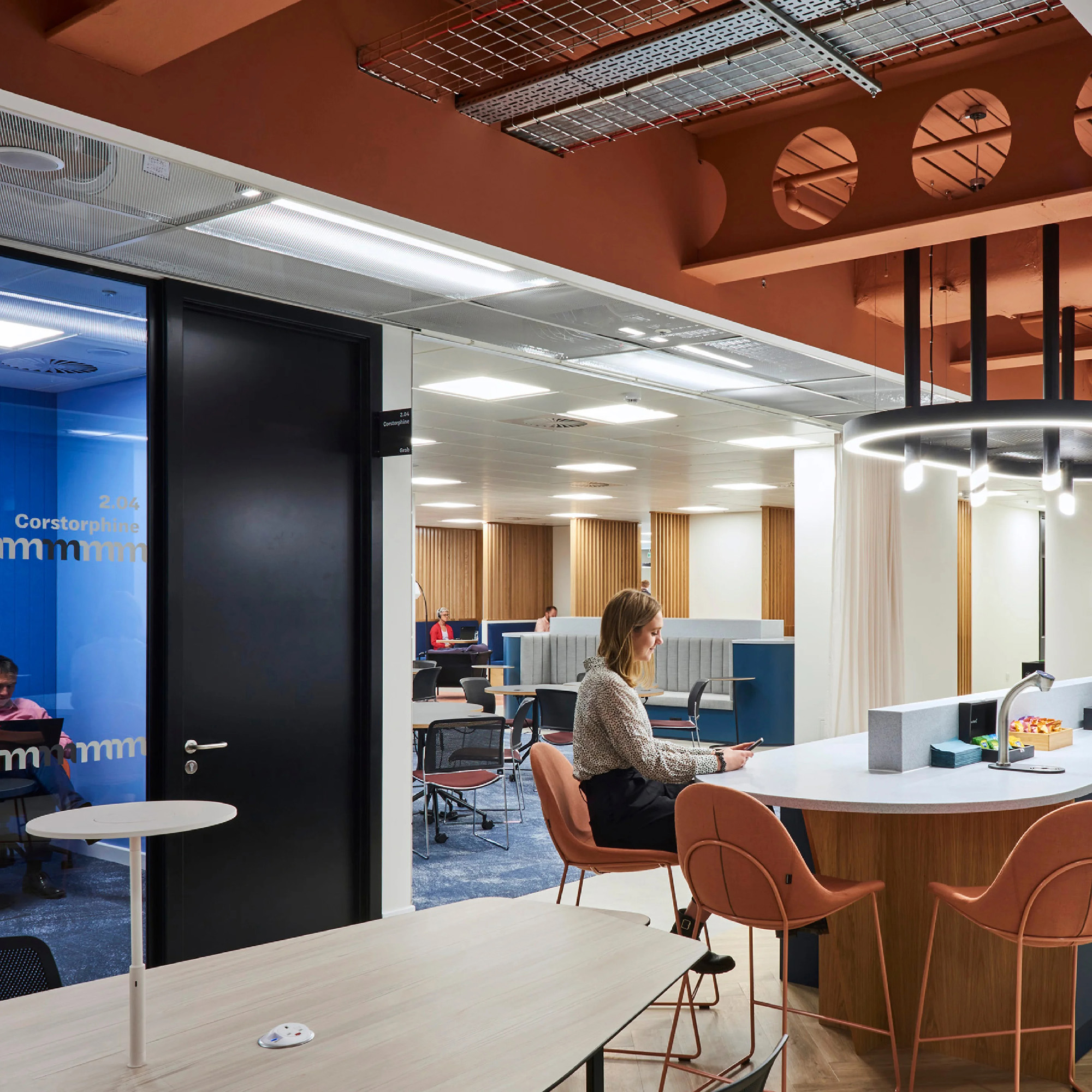 国际审计、税务与咨询机构玛泽会计师事务所(Mazars)在原址运营15年后,现已迁至爱丁堡市中心的旗舰办公场所。入驻Capital Square时,玛泽深知必须打造与其人才招募理念相契合的室内空间。在Workplace Creations设计团队与Amos Beech以及玛泽团队的通力合作下,最终交付的成果不仅促进员工内部协作及客户互动,更持续激发创新活力与创造性思维。