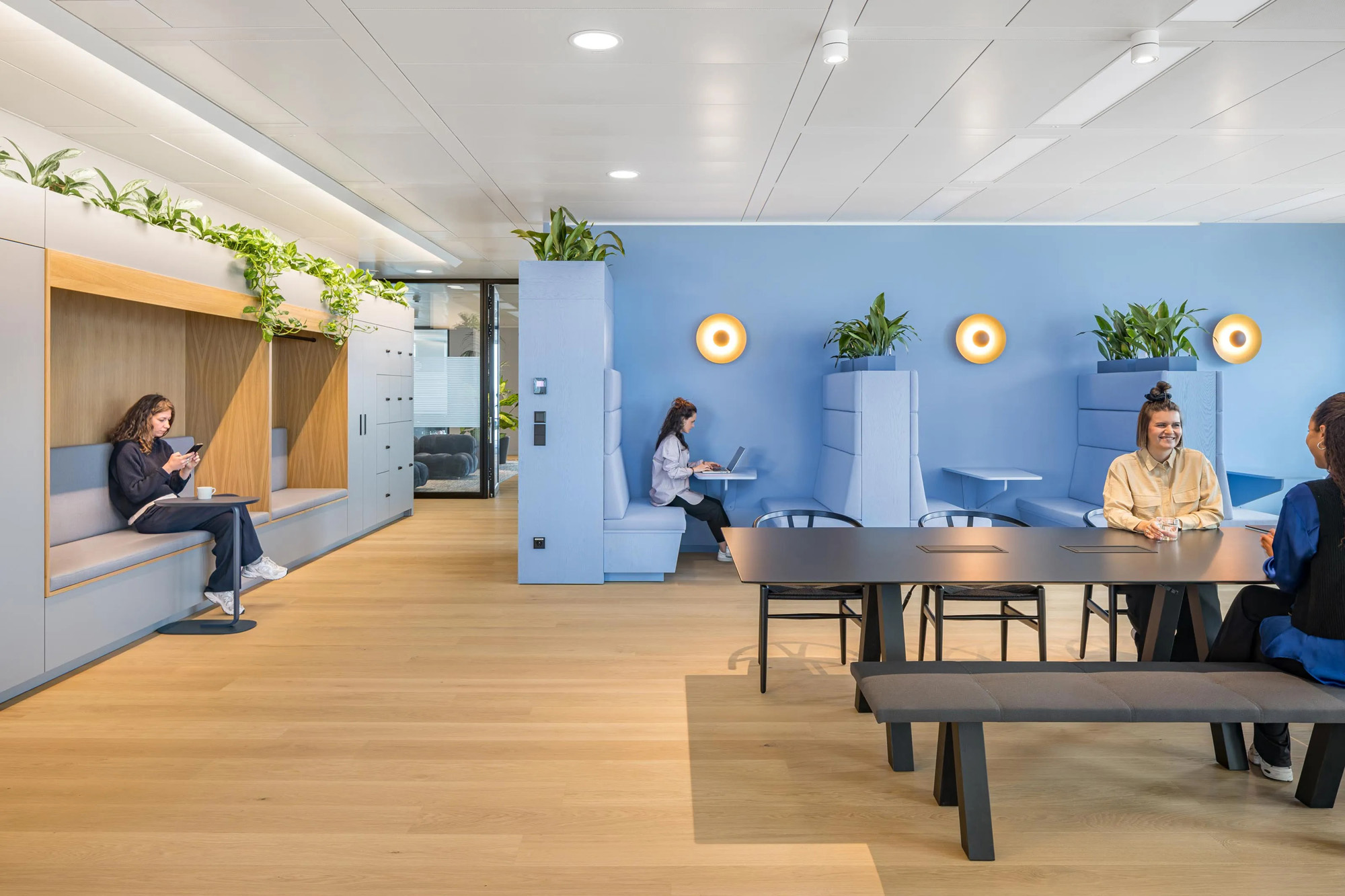 该办公室的核心是一处被称为"核心互动区"的公共区域。该区域空间宽敞,设有一处咖啡吧、休闲座位、开放式会议角以及一个多功能空间——可根据需要灵活调整为各类活动场地。