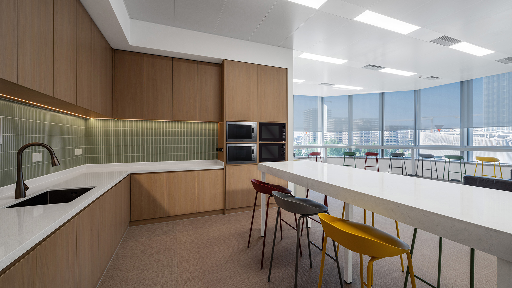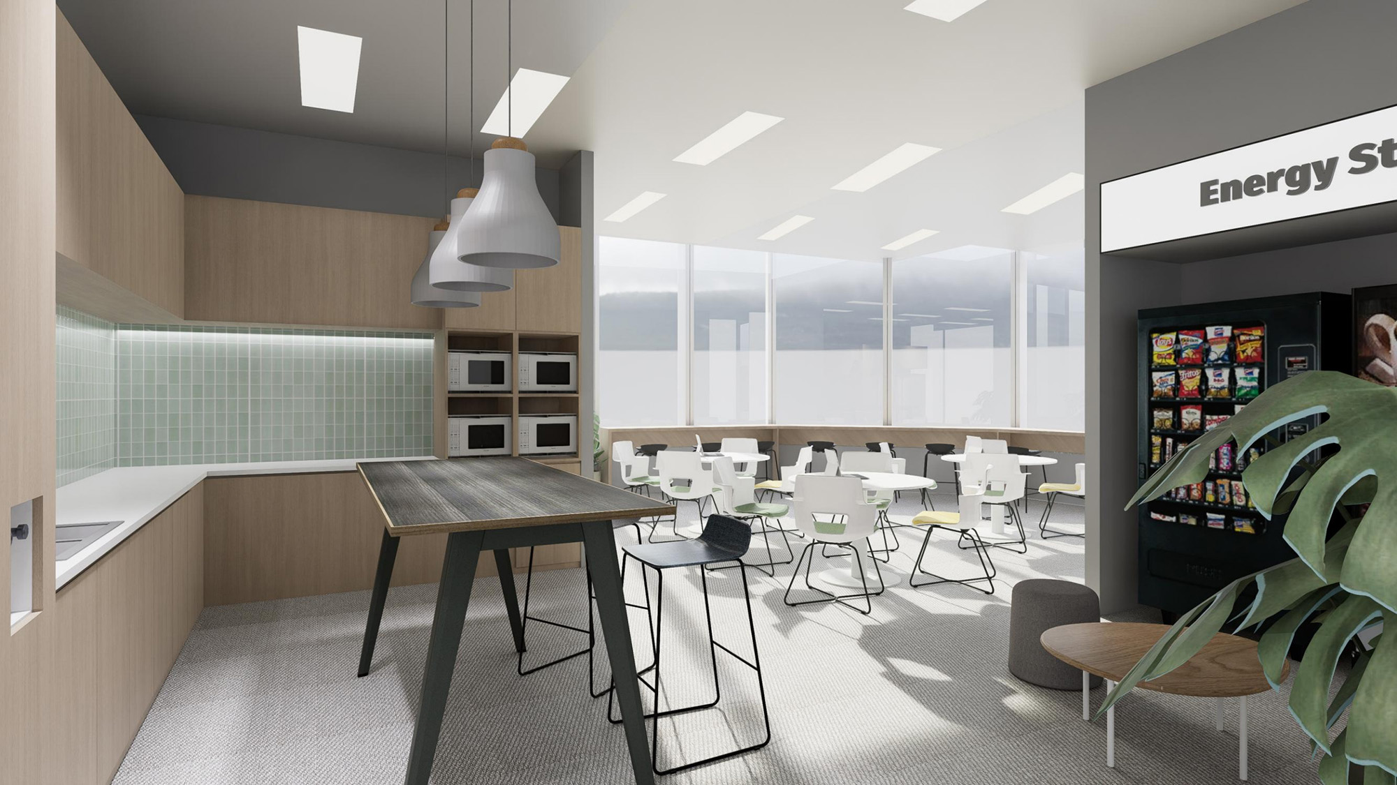 这里不只是“补给站”,更是凝聚力与创造力的发生地。设计师通过开放式布局与柔和色彩,营造出舒缓而友好的环境,功能性的空间因细节的用心,变得更有人情味,在这里,员工的放松与交流自然发生。