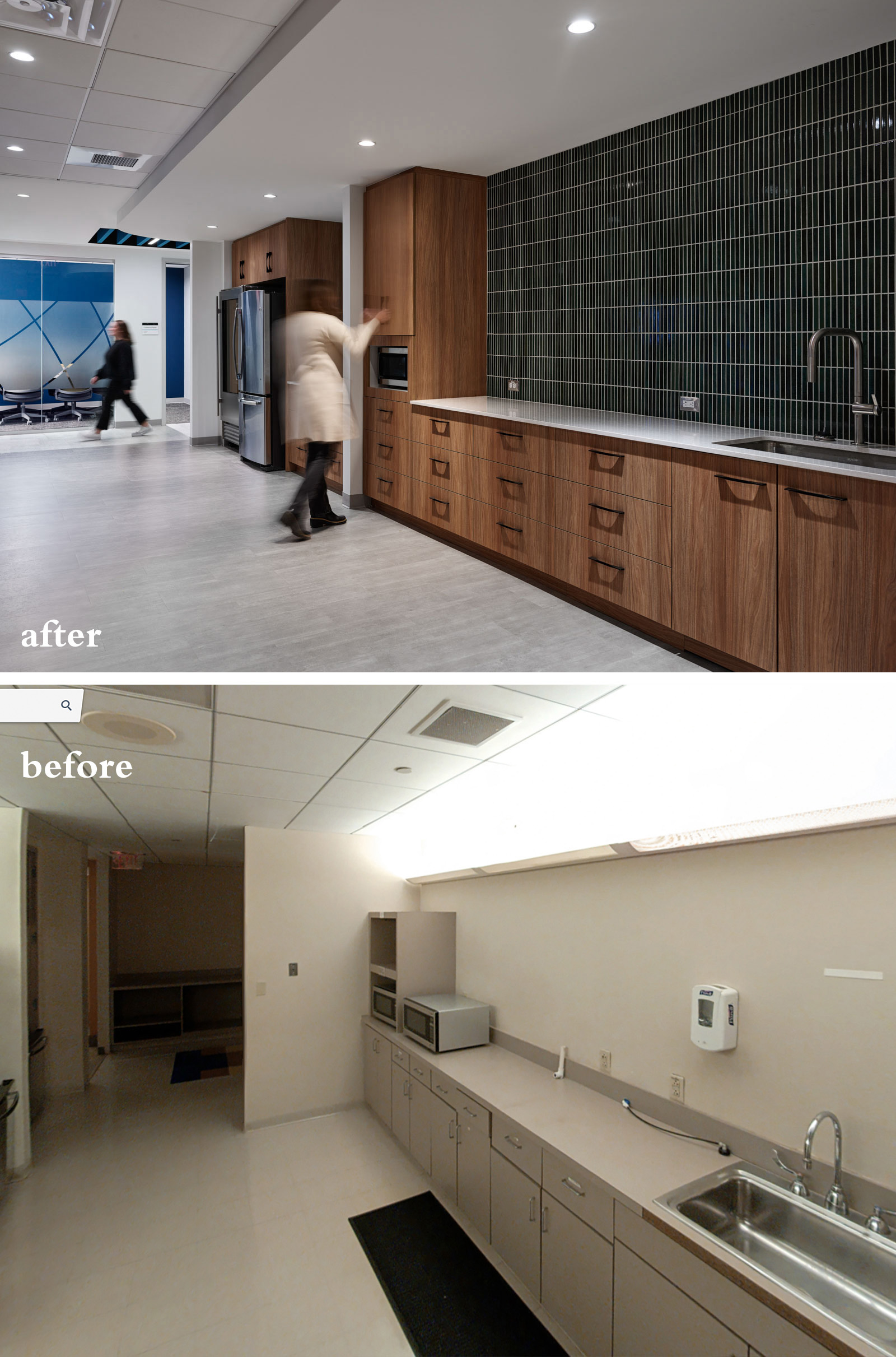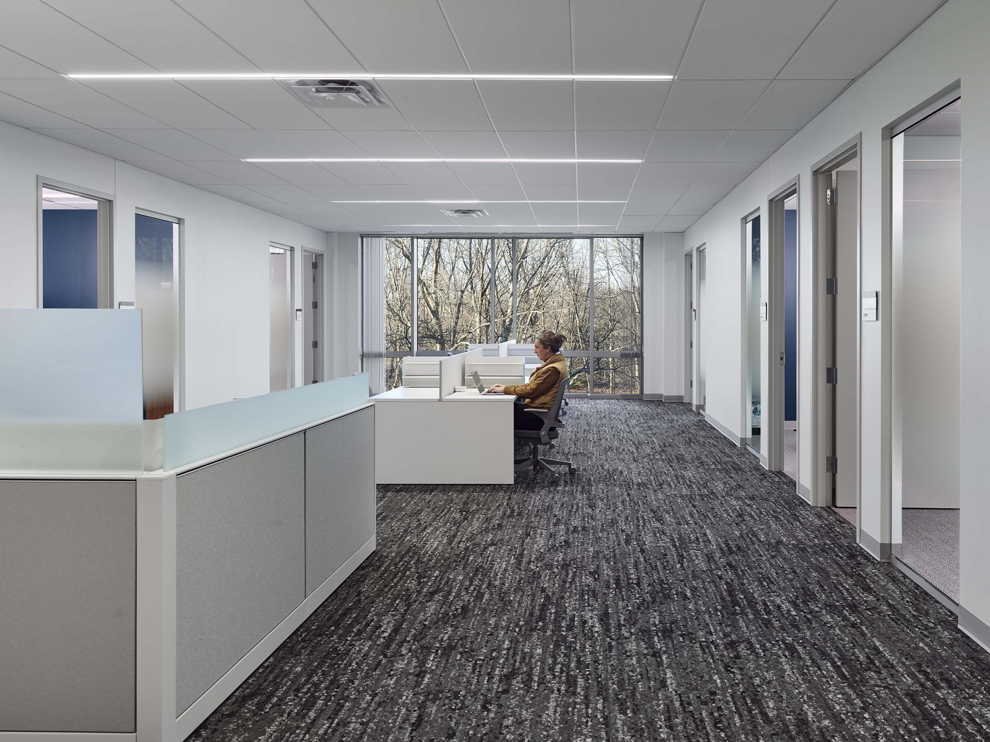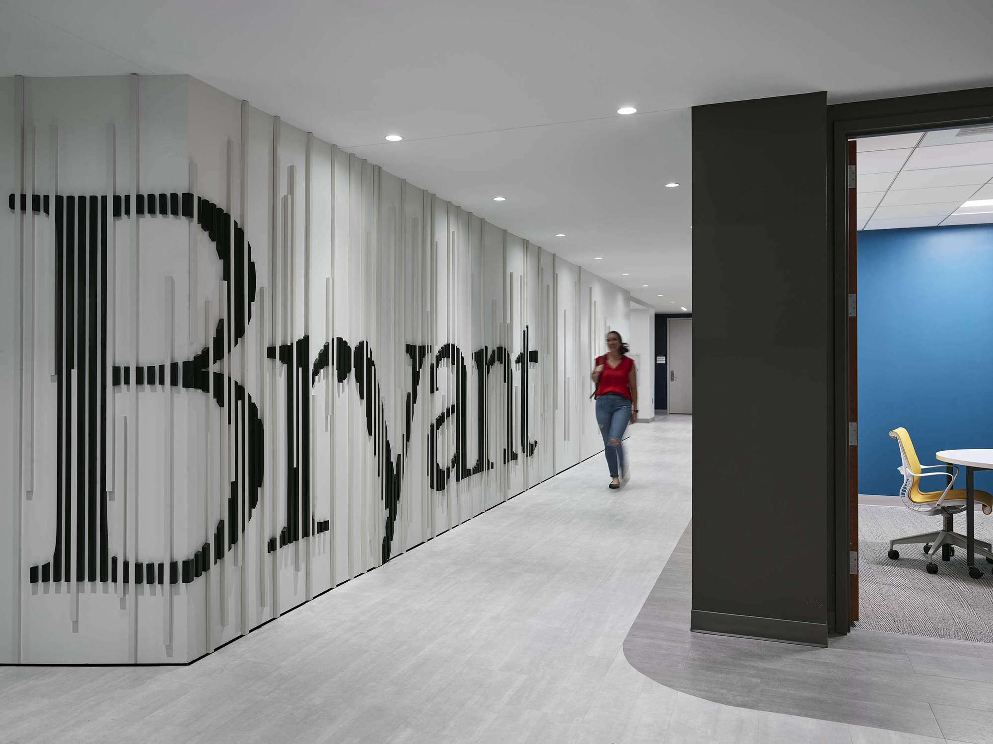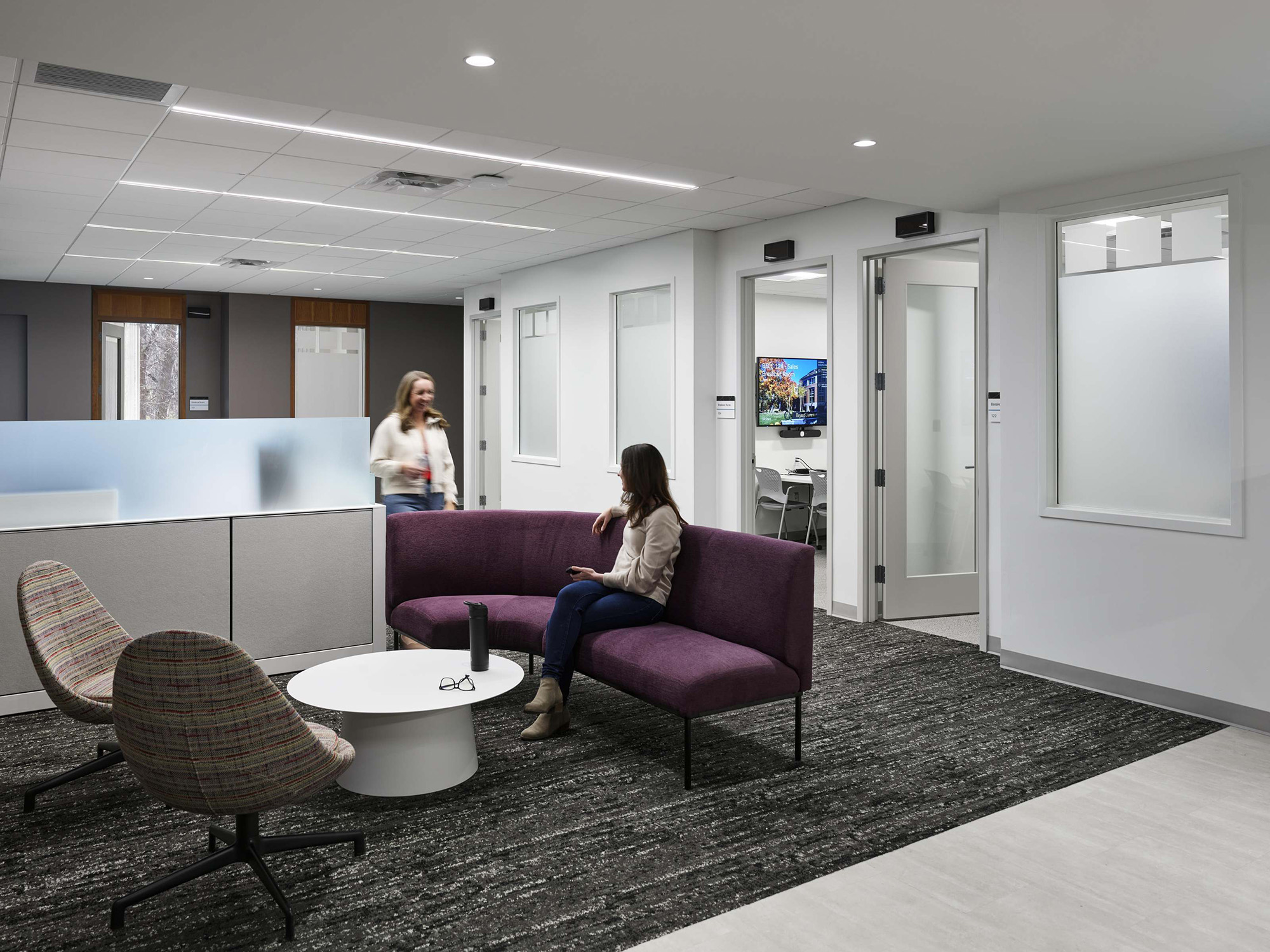这栋由富达投资(Fidelity Investments)捐赠给大学的建筑,原内部结构包含封闭式办公空间及企业配套设施,如小型厨房、更衣室和餐厅。作为项目一期工程,设计团队将两层原办公区域改造为8,361平方米的协作式学习空间,供该大学的商学院使用。该空间配备尖端实验室,并专设AI人工智能、数据分析、设计思维及销售等特色功能区。