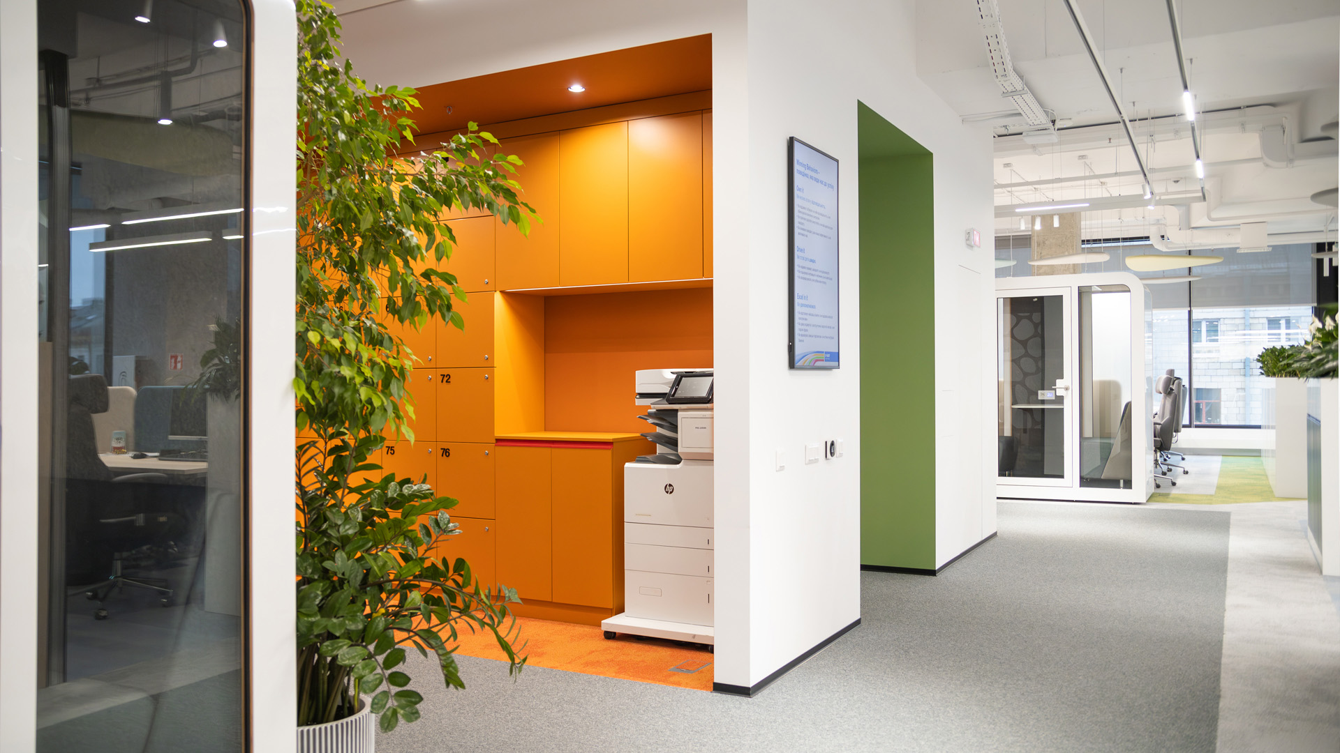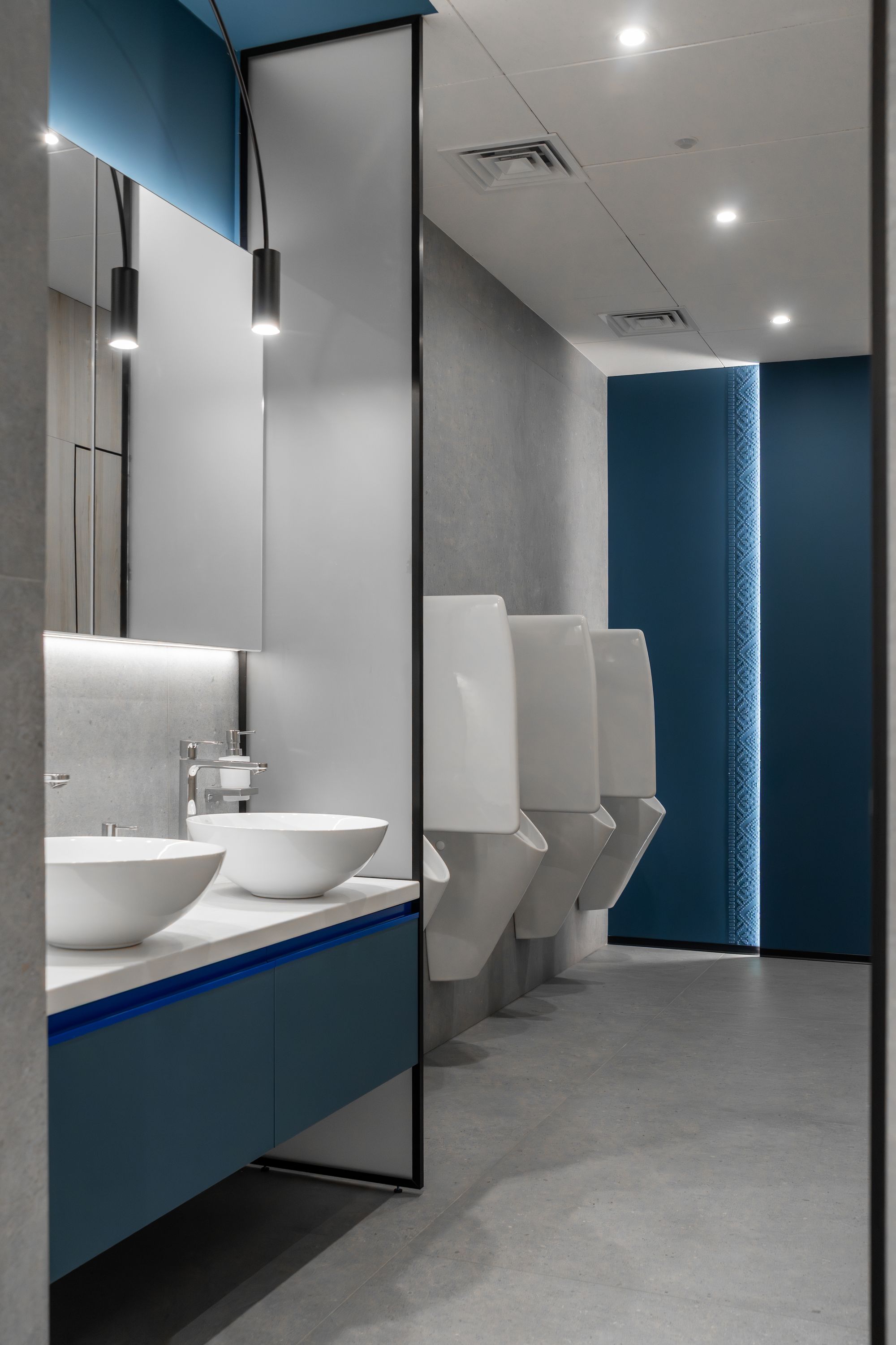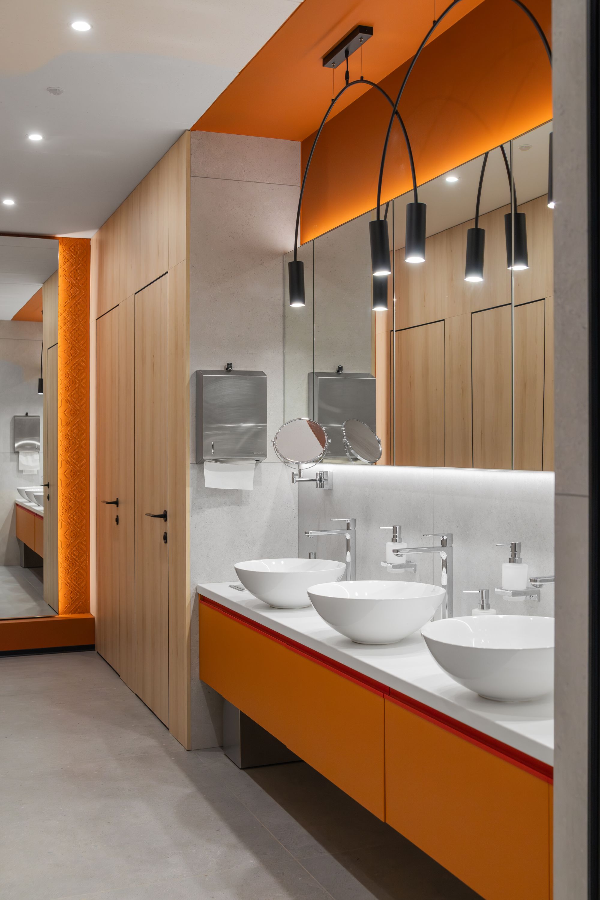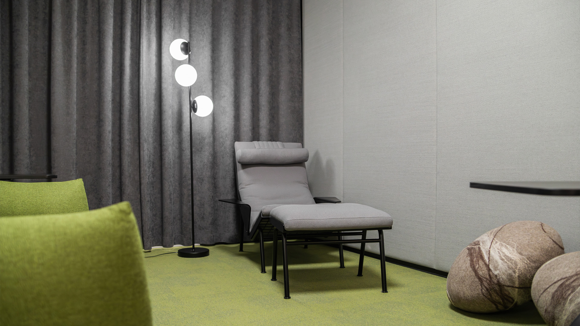 动线路径清晰合理,既确保动线顺畅亦促进自然光线分布。色彩点缀取自巴斯夫企业色系,通过织物与平面元素微妙呈现。乌克兰设计师的小型装饰细节与艺术陈设为空间注入在地语境,以含蓄笔触传递真实质感。