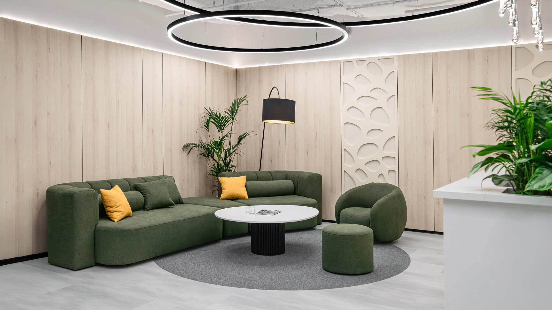 BASF巴斯夫基辅办公室由MEYT设计,占地1,222平方米,以可持续性与精准细节构筑了一个宁静而实用的空间。办公室整体采用天然材料并融入绿植元素,营造出和谐氛围,旨在促进创新思维与人际连接,生动诠释了公司秉持的创新精神、责任意识及人与自然和谐共生的核心价值观。