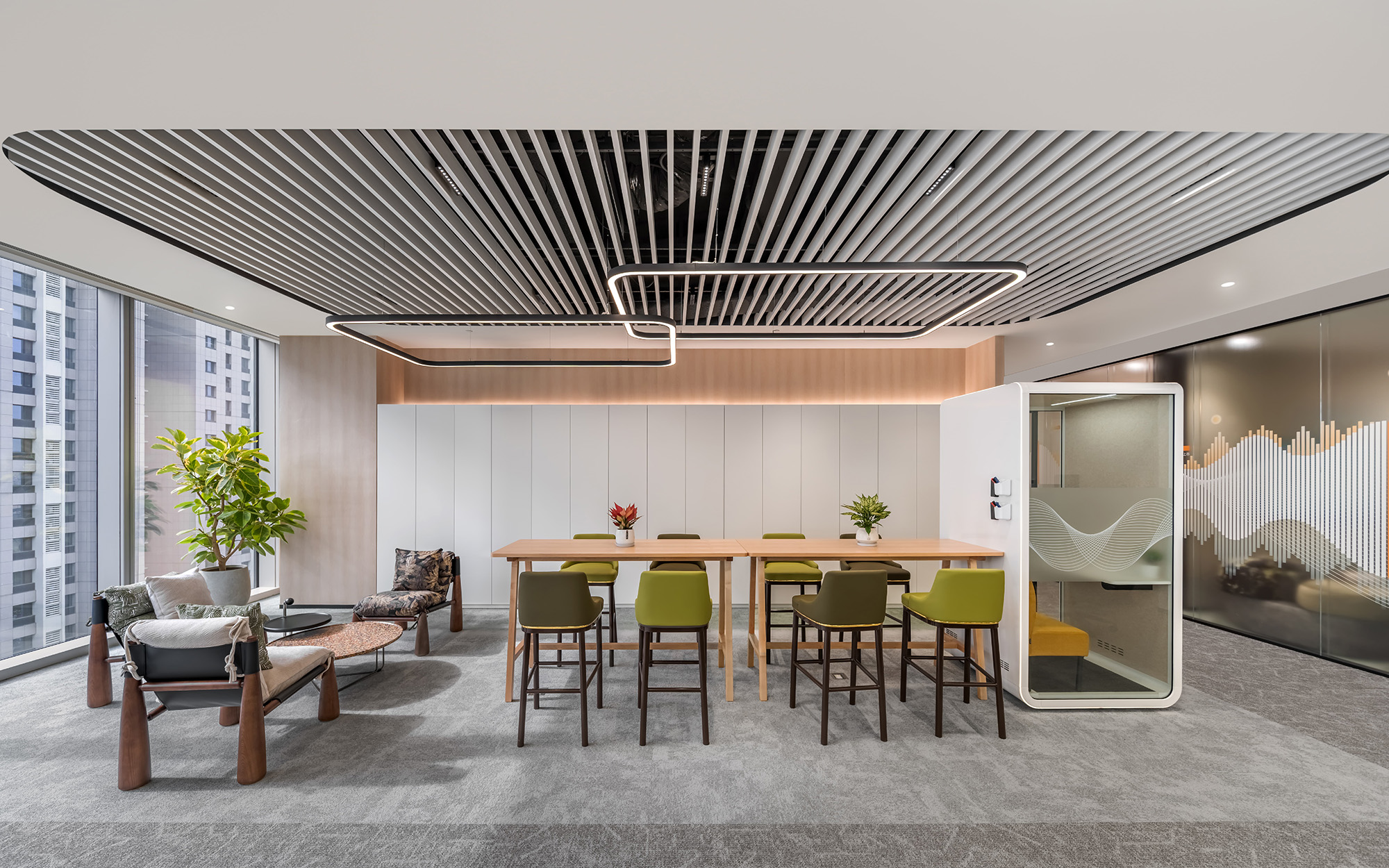 设计团队 以“品牌沉浸、效率赋能、绿色健康”为核心策略,将科技企业的内在逻辑转化为可感知的空间语言,使办公环境本身成为激发创新的一部分,打造面向未来的成长型工作场域。
