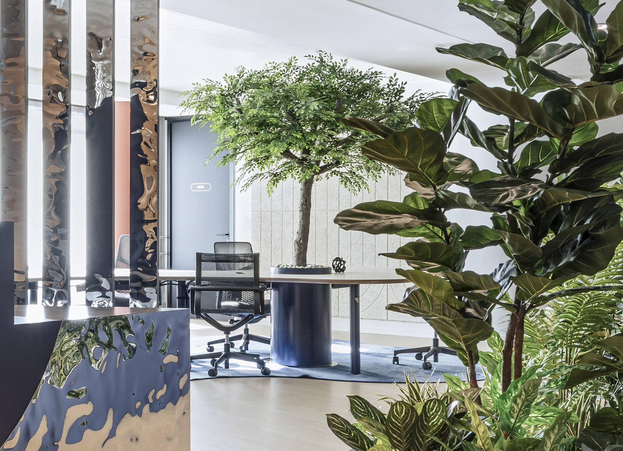 设计灵感源自火、水、气、土四大自然元素,这些元素也体现了集团的基因与价值观。它们如同贯穿项目的创意脉络,引导空间布局、材料选择与家具陈设,最终形成鼓励协作与舒适感的和谐环境。