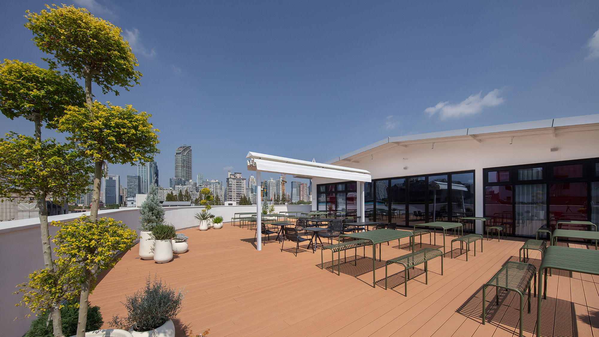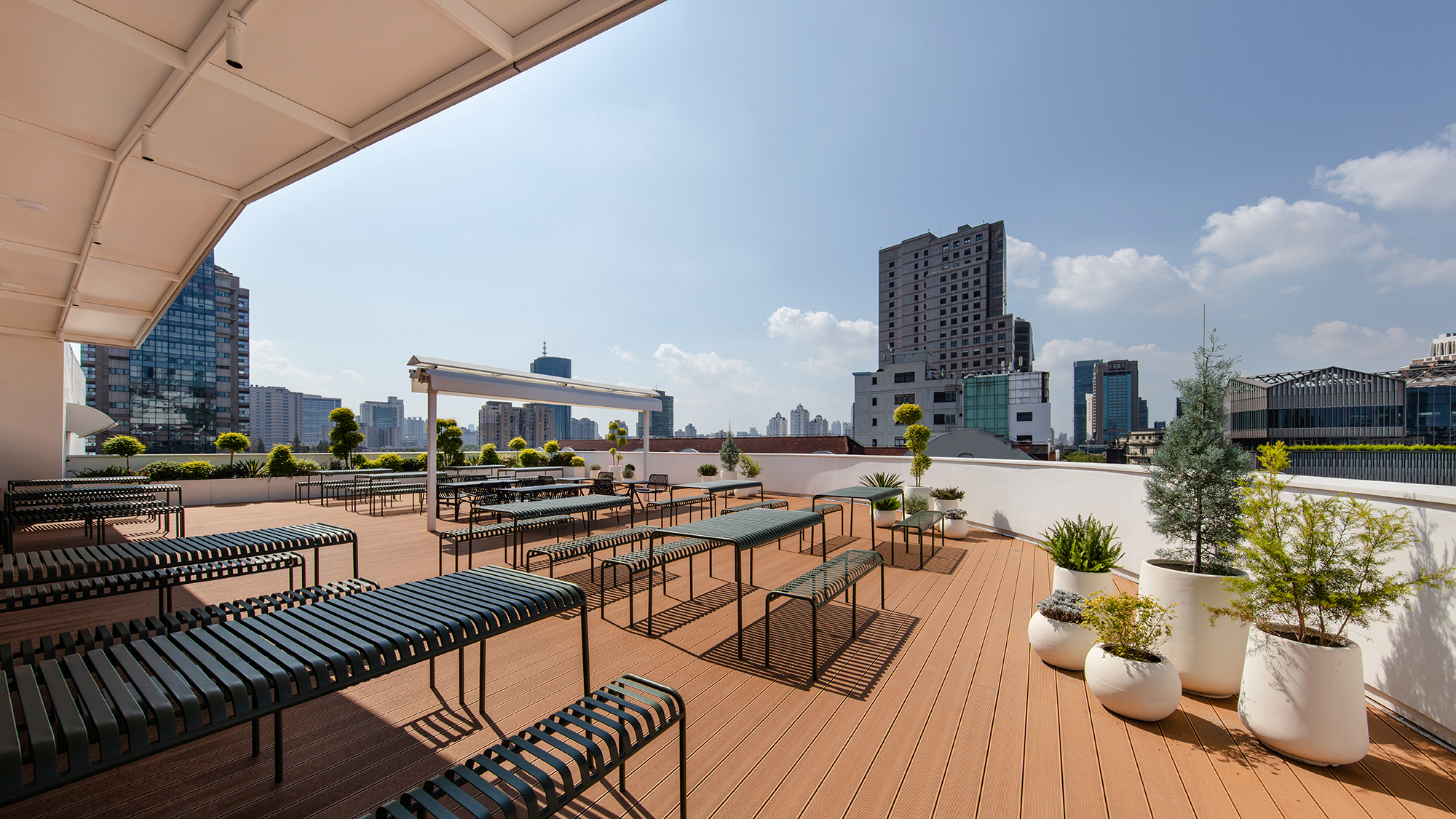 最引人注目的干预措施之一是在顶层增加了新的屋顶结构。它可容纳200人,为市政厅会议、内部活动、派对和日常午餐提供多功能空间。在其中心,食堂成为一个社交中心,将员工聚集在一个既公共又令人振奋的空间中。绿色露台连接到室外,将工作日延伸到办公室之外。在这里,员工可以享受阳光,喝咖啡,甚至可以组织瑜伽等健身活动——这是快节奏城市生活的重要平衡。