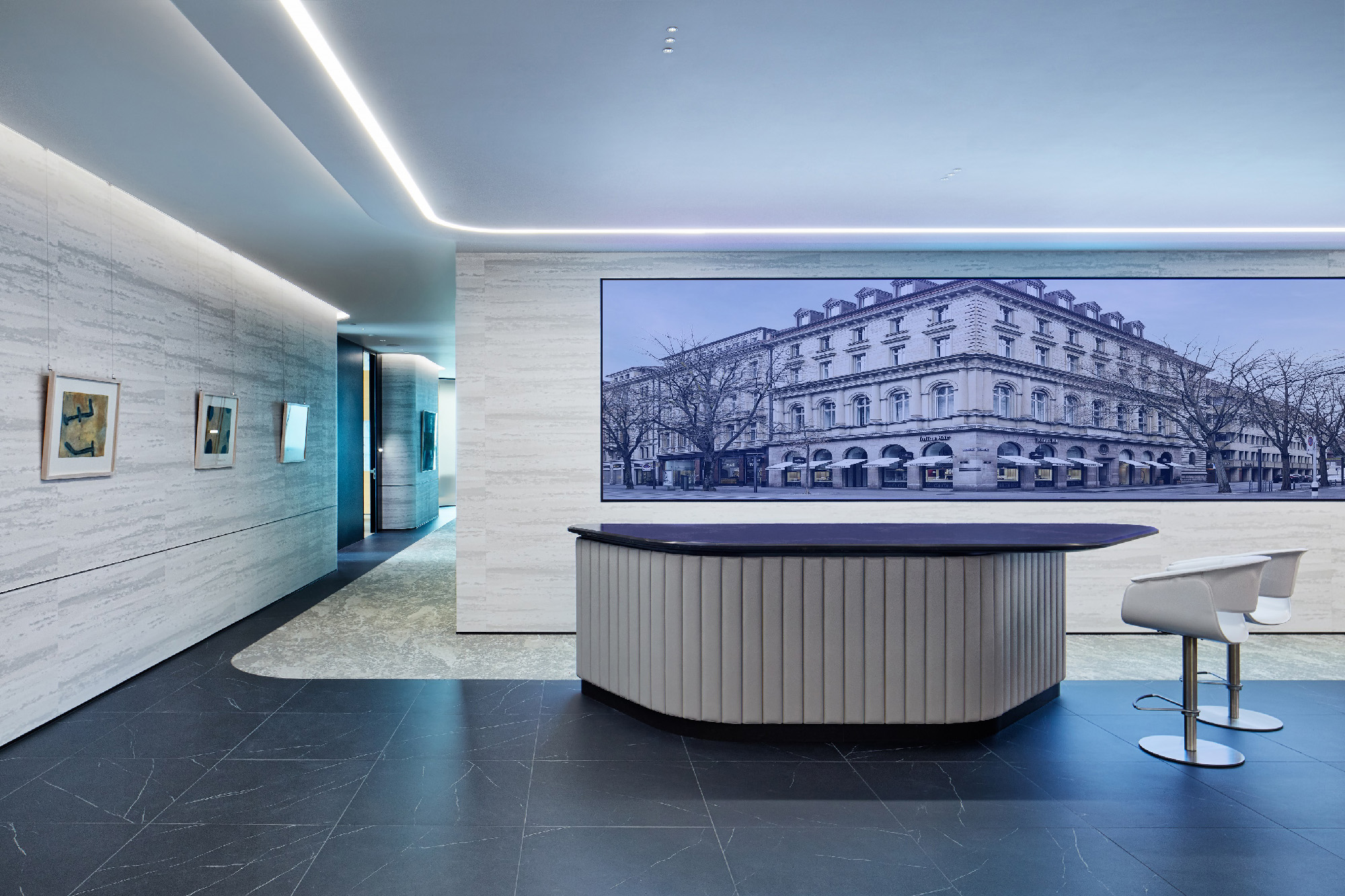 穿过这片开阔的迎宾区域,一组配置齐全的会客区域将为客户呈现一系列精心策划的专属礼遇与体验。每个房间均围绕特定生活主题展开——音乐、文学、艺术、茶道与品酒——以轻松愉悦的个性化氛围满足多元志趣。各空间内皆陈设着精挑细选的雅致藏品,艺术佳作更通过与苏黎世艺术顾问团队的紧密协作进行布局,成为提升用户体验的重要载体。