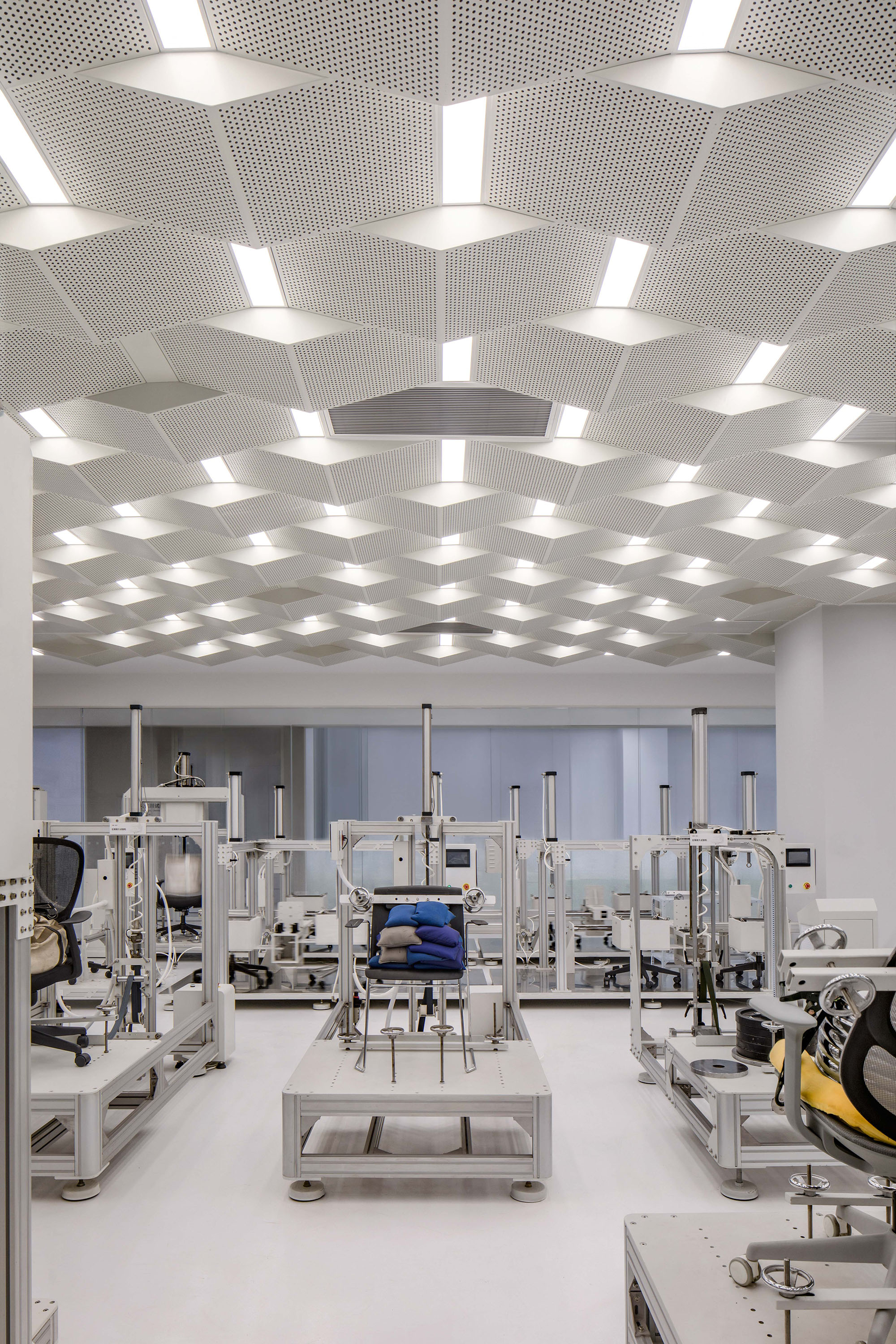 中庭与研发实验室等核心空间灵活且高效,支持测试、协作与展示。建筑与工程的深度整合为团队提供舒适可调的环境,使设计、打样与展示在同一空间高效完成。