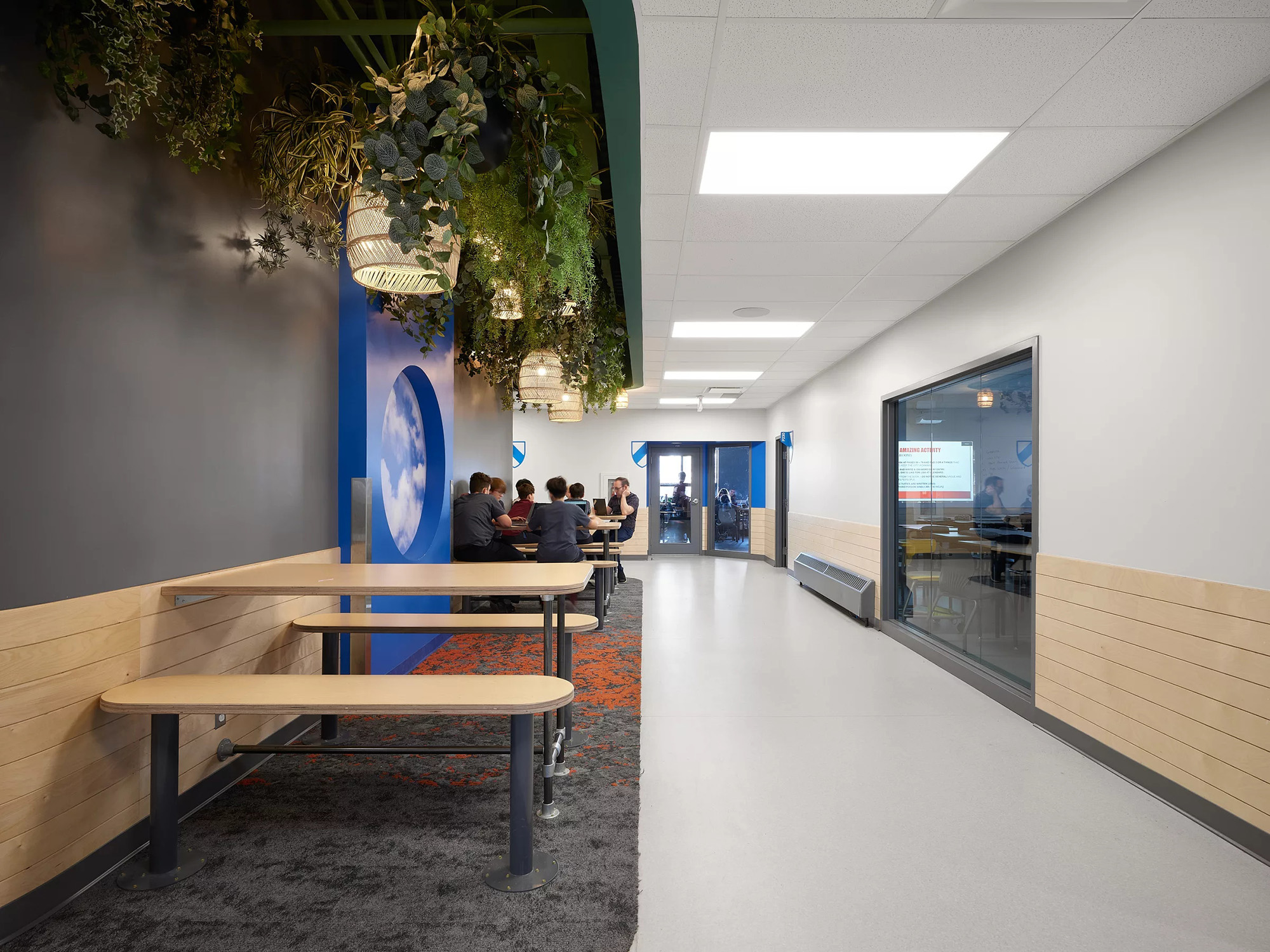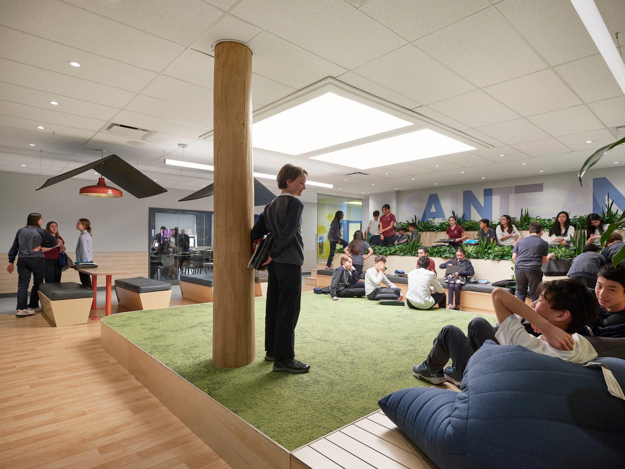 最终,这些改造措施根植于设计团队对整体教育环境的理解和承诺。通过融合天然材料、动态光线与灵活家具,设计团队打造出一座滋养心灵、身体与社群关系的空间。诚然,从令人沉静的木质色调到焕发活力的葱郁绿植,每一处细节的选择皆旨在支持学生的成长之旅,并培养他们对探索与联结的持久热爱。