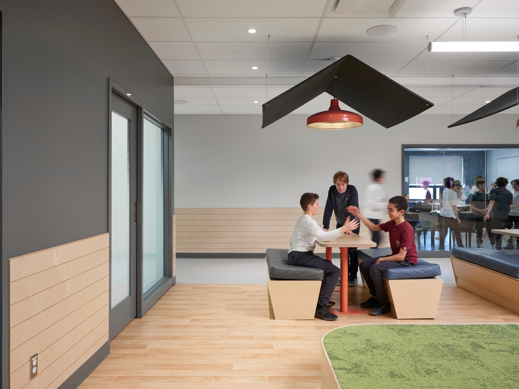 设计团队在走廊中增设了多个直观的子空间,以拓展学习环境。这些非正式聚会区域既适合友好交流,也便于开展自发性的学习活动,或仅仅是享受片刻沉思,为学生提供了多样化选择,使他们能在全天侯的校园生活中优先关注创造力与身心健康。