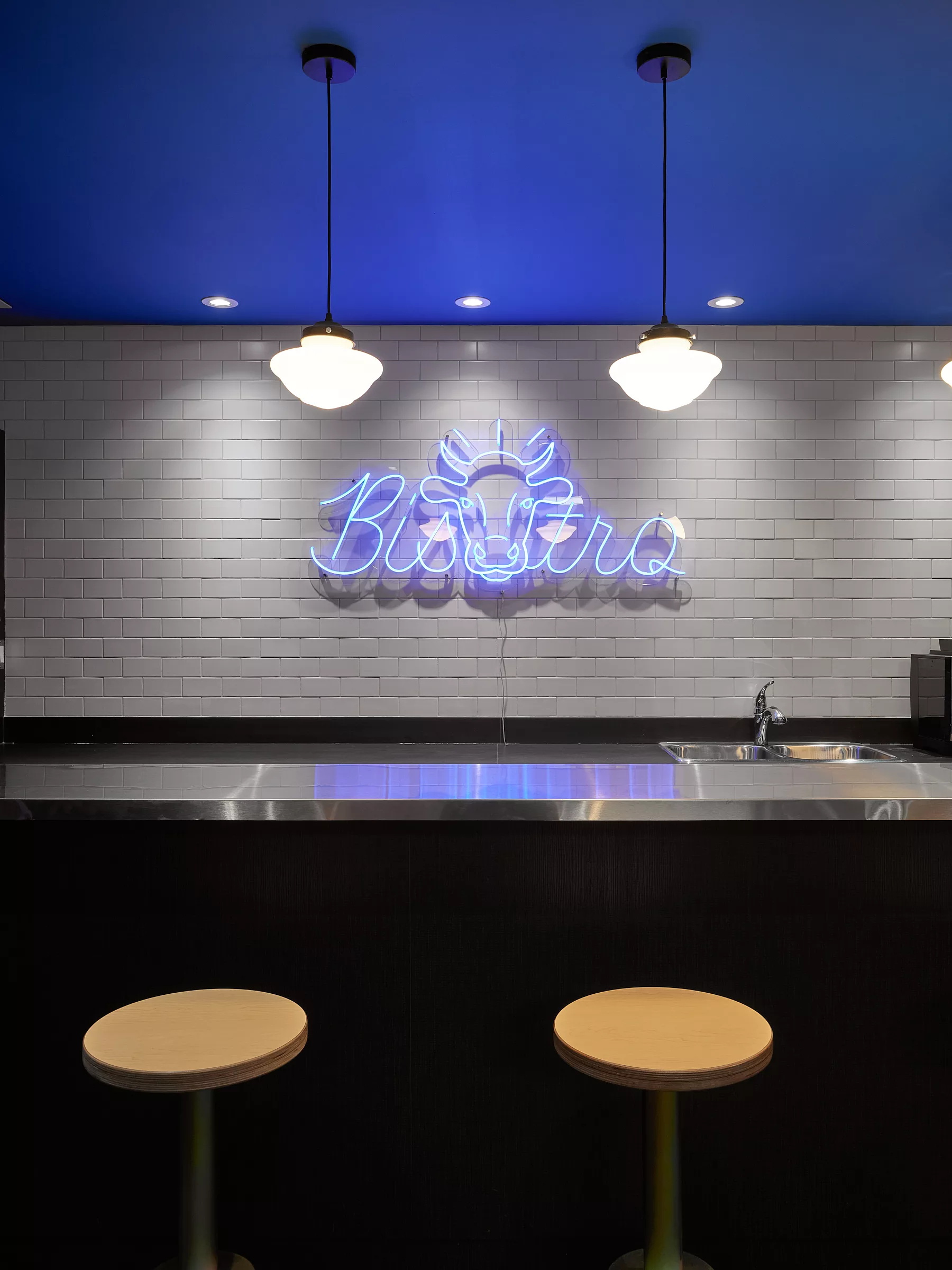 在采用毛毡材质的悬浮天花板下,工作区围绕长桌布局,既界定了空间范围又实现了吸声效果。该区域的家具配置增强了空间灵活性,同时营造出温馨氛围,使团队协作与友好休憩之间实现自然过渡。
