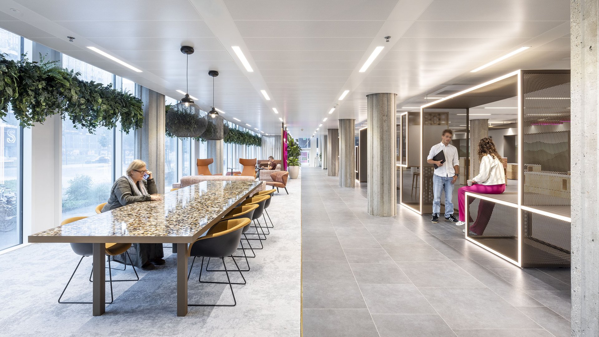 在De Knoop,各功能区巧妙交织,宛若天生契合。接待台不再隐于角落,而是醒目立于C位迎接众人,成为公共空间的自然延伸。曾隐于餐厅下方的楼层,如今化身为不容忽视的活力场域——这里激发不期而遇的互动:您可以在棋盘前对弈,或在乒乓桌旁畅谈。游戏于此化作媒介,让联结自然生发。