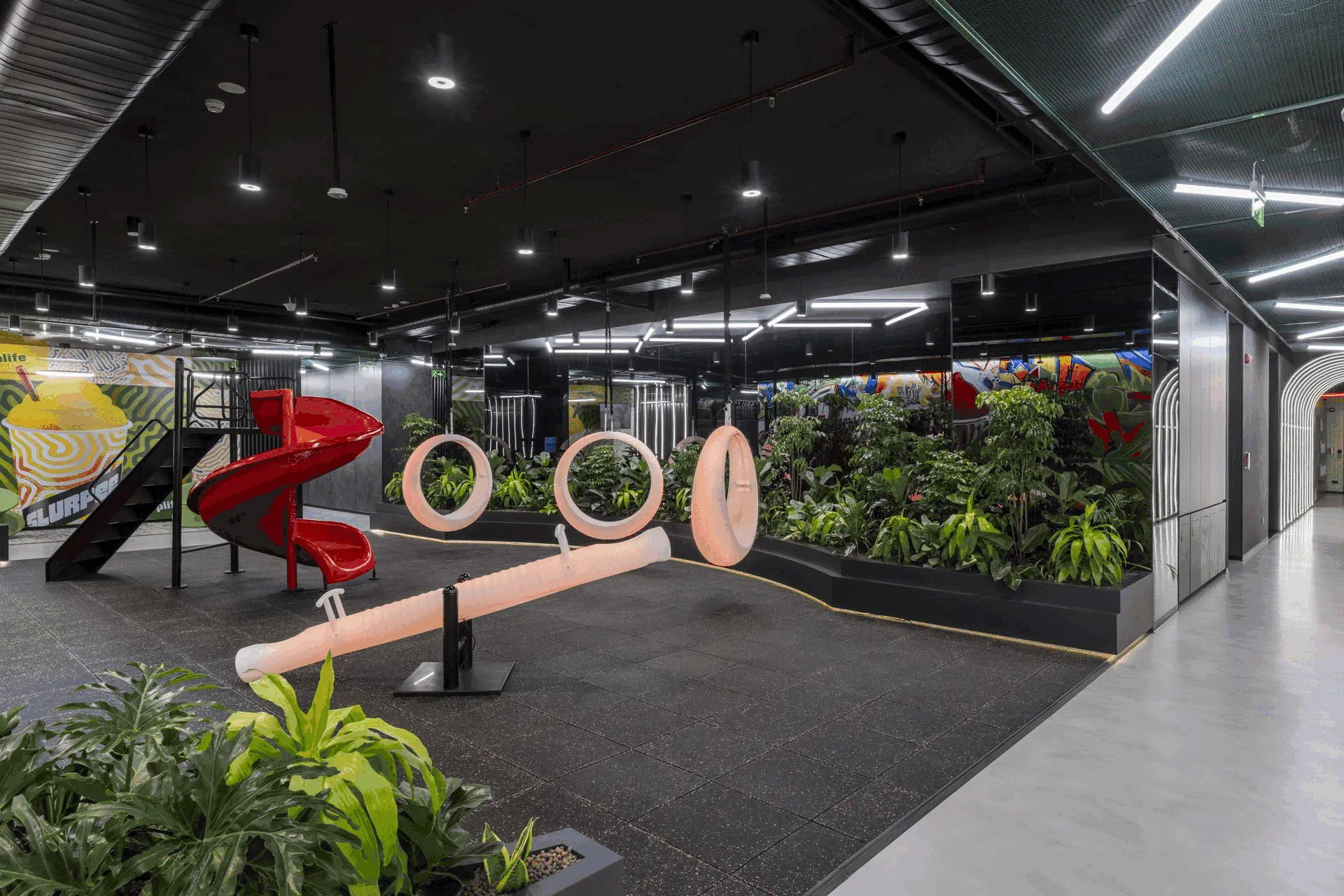 “城市游乐场”在冲击性视觉表现之外,更蕴藏着深刻的人文内核。其设计旨在培育参与感、幸福感与联结感——这些特质对于维系混合办公时代的高效能团队至关重要。空间序列的巧妙穿插既促进协作交流,亦预留沉思休憩的静谧角落。这种专注与自由的动态平衡,精准契合了Z世代与千禧一代职场人对真实性、灵活性与意义感的追求。在此,设计已然成为文化的催化剂,持续塑造着人们的情绪体验、互动模式与成长轨迹。