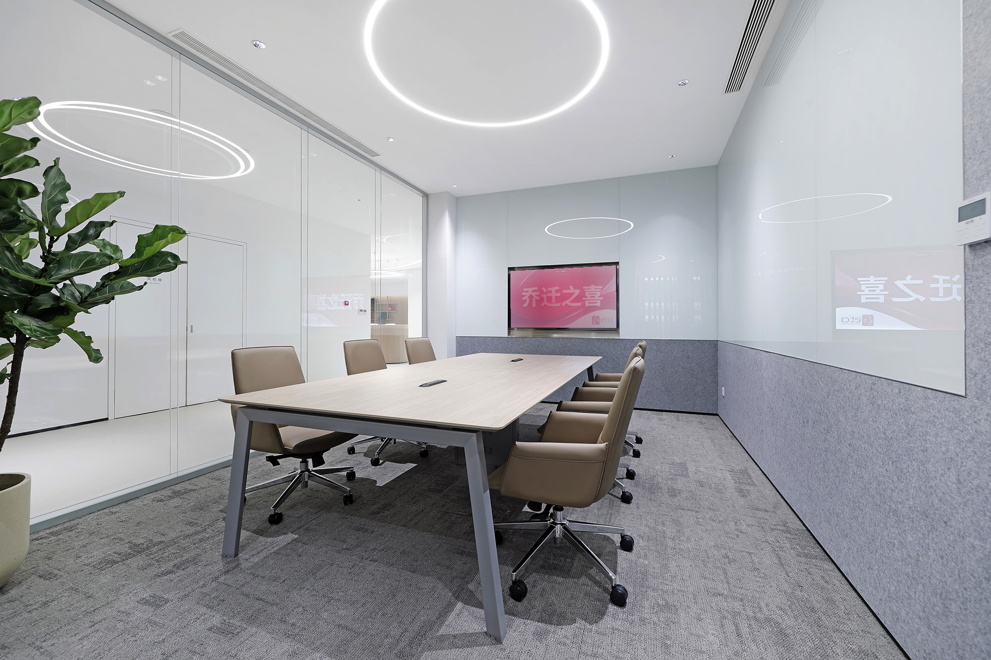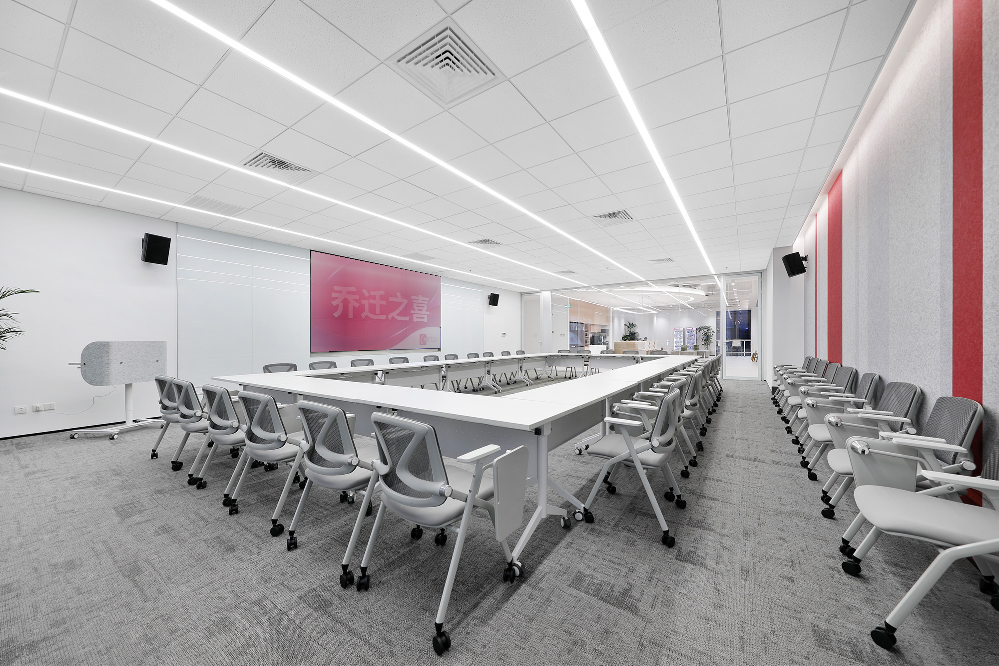 针对高频会议与培训需求,空间规划了功能互补的大小会议室与培训室。大会议室采用开阔布局,配备高清显示系统与专业声学设备,沉稳色调助力参会者集中注意力、高效决策;小会议室灵活紧凑,柔和灯光营造轻松氛围,适配部门研讨与小组沟通;培训室以模块化设计为主,可根据人数调整座位排列,充足采光与舒适座椅,让长时间培训也能保持良好体验,助力知识高效传递。