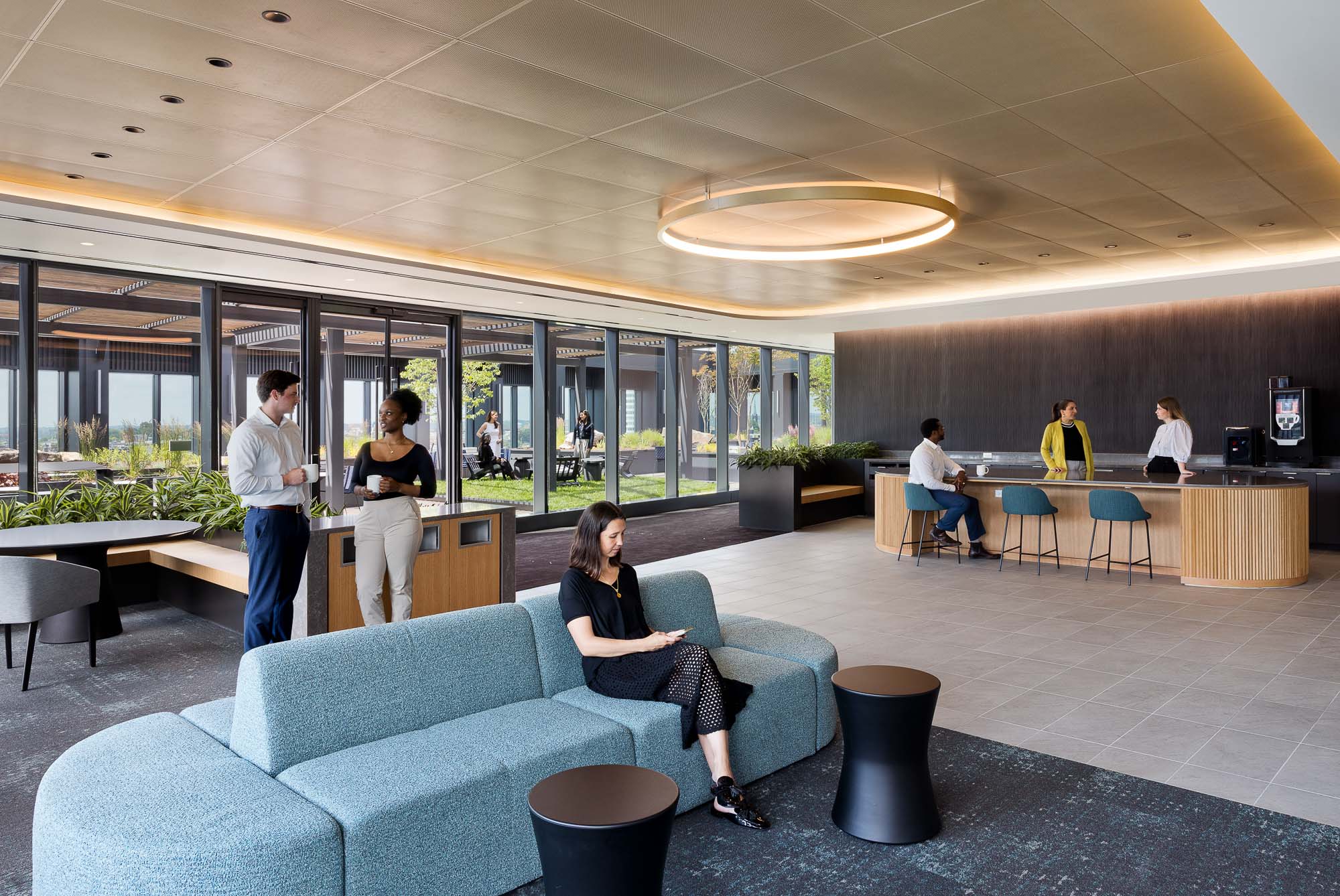 Gensler设计团队与T. Rowe Price携手打造了一处重新定义公司工作模式、协作方式及社区互动的总部空间。通过深入的员工参与及基于角色画像的设计研究,团队在两座相连的塔楼中构建了一个以酒店式服务为导向的灵活工作场所。新园区融合前沿科技与可持续策略,并配备从会议中心、广播演播室到健康空间等一系列丰富设施,创造出既能支持多元工作模式、强化社区联结,又能推动企业践行未来愿景的整体环境。