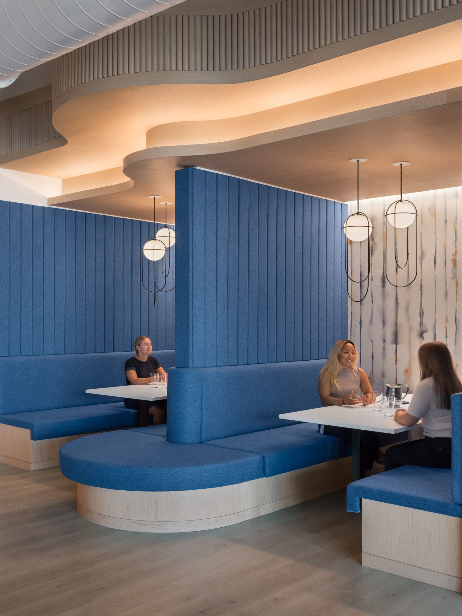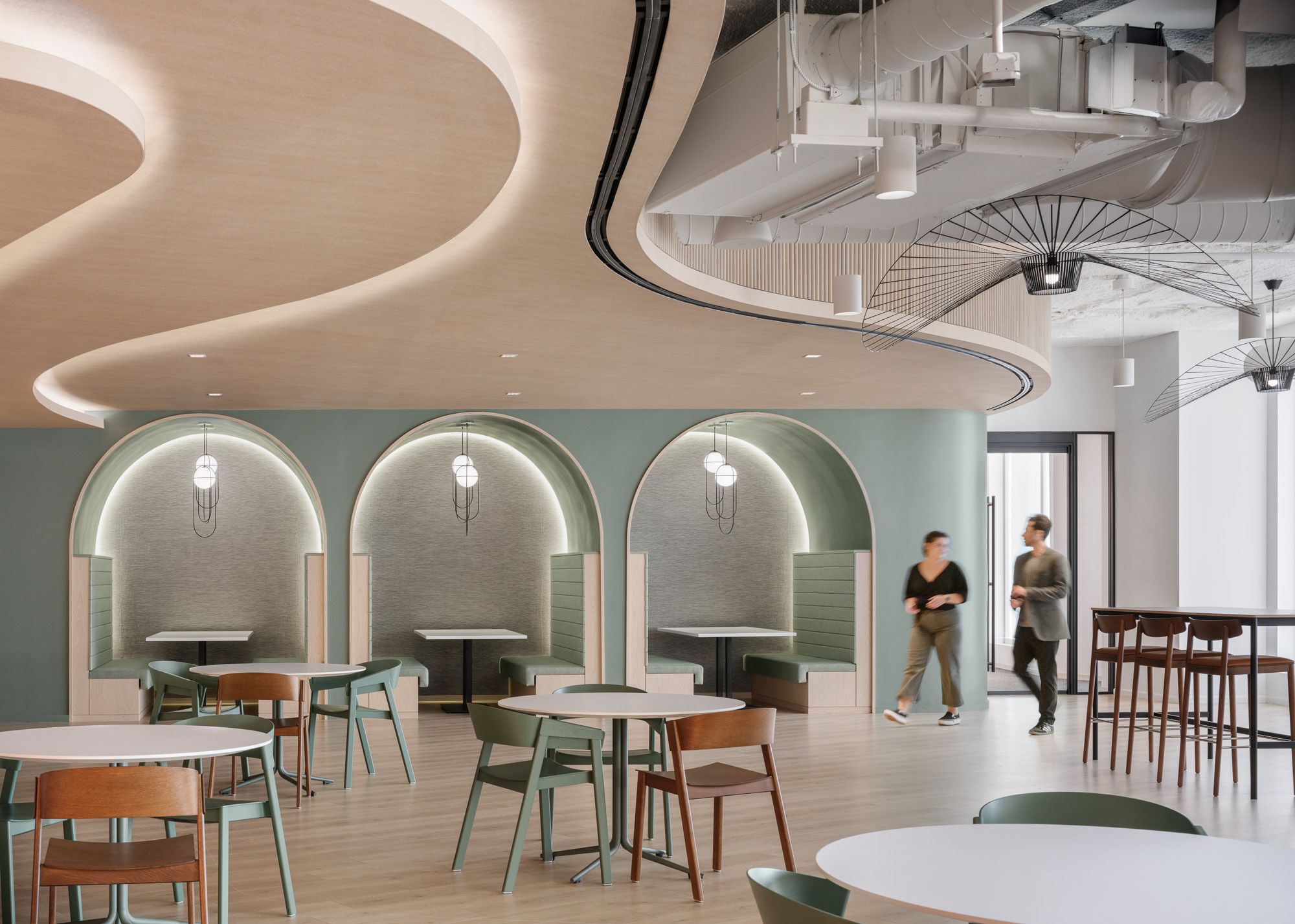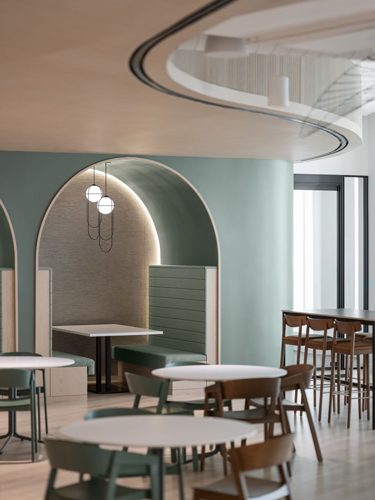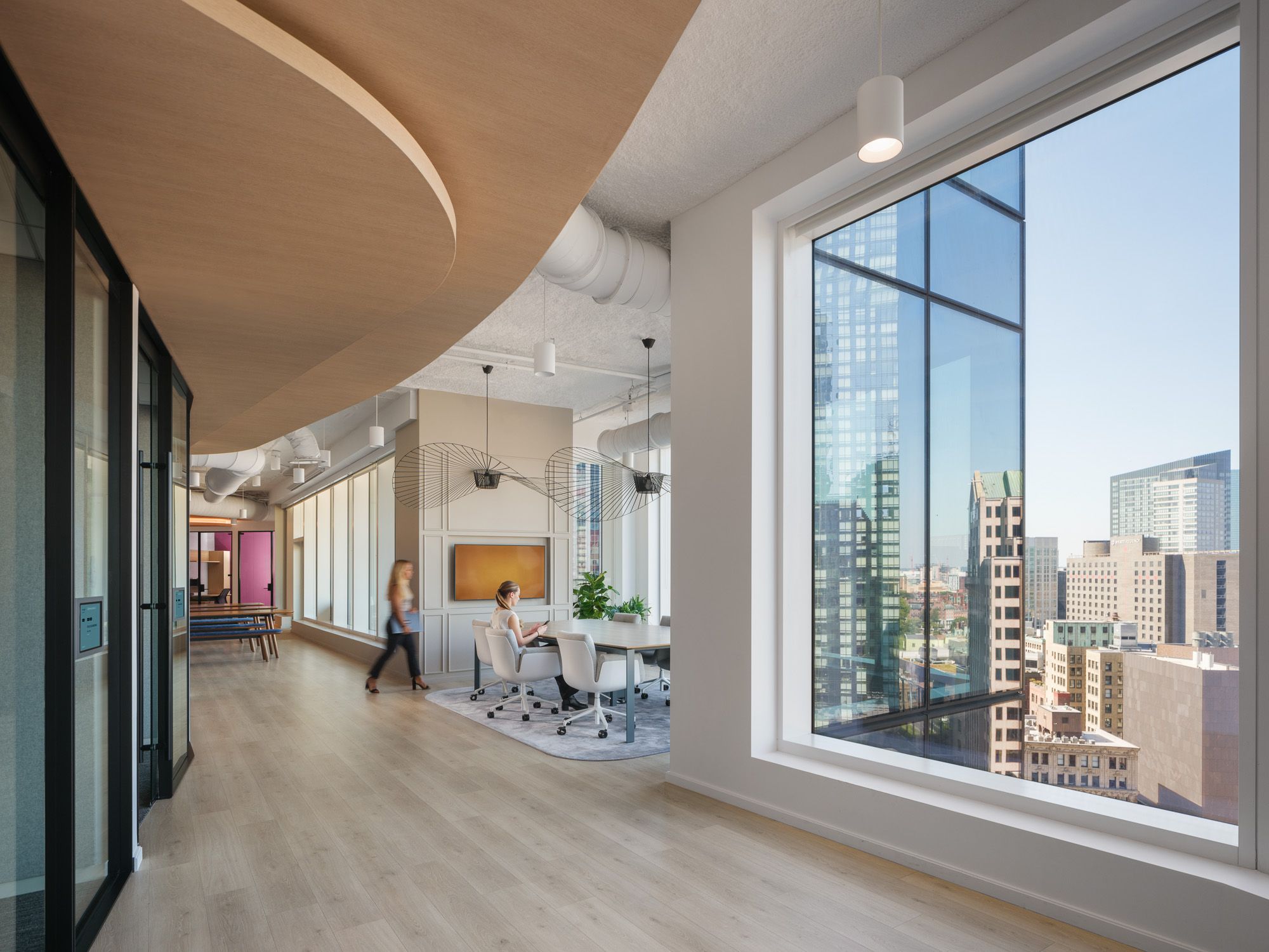 柔和流畅的曲线语言与沉静现代的色彩体系交织,共同界定了这家全球咨询公司波士顿办公场所的建筑语汇。