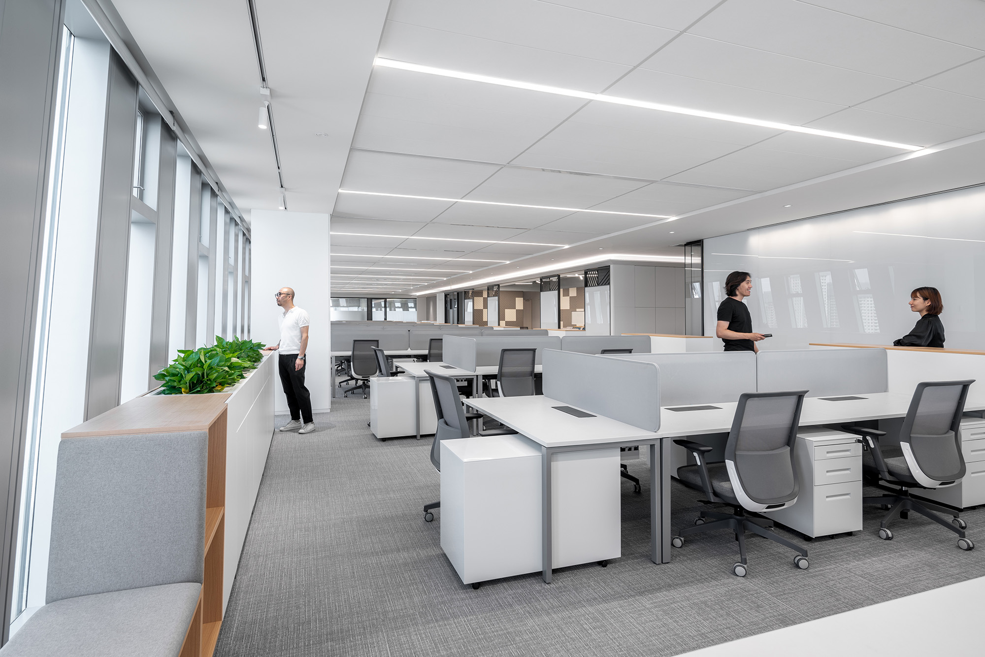 总部内遍布支持协作与专注的多元场景。融入绿植与艺术的休息区,以柔软的沙发座椅围合出促进非正式交流或静思的角落。开放式办公区则凭借浅色长桌、充足光照与窗外景观,构建出鼓励个人深度工作与偶发互动的清晰场域。这些场景共同体现对员工福祉与多元工作模式的深度支持。