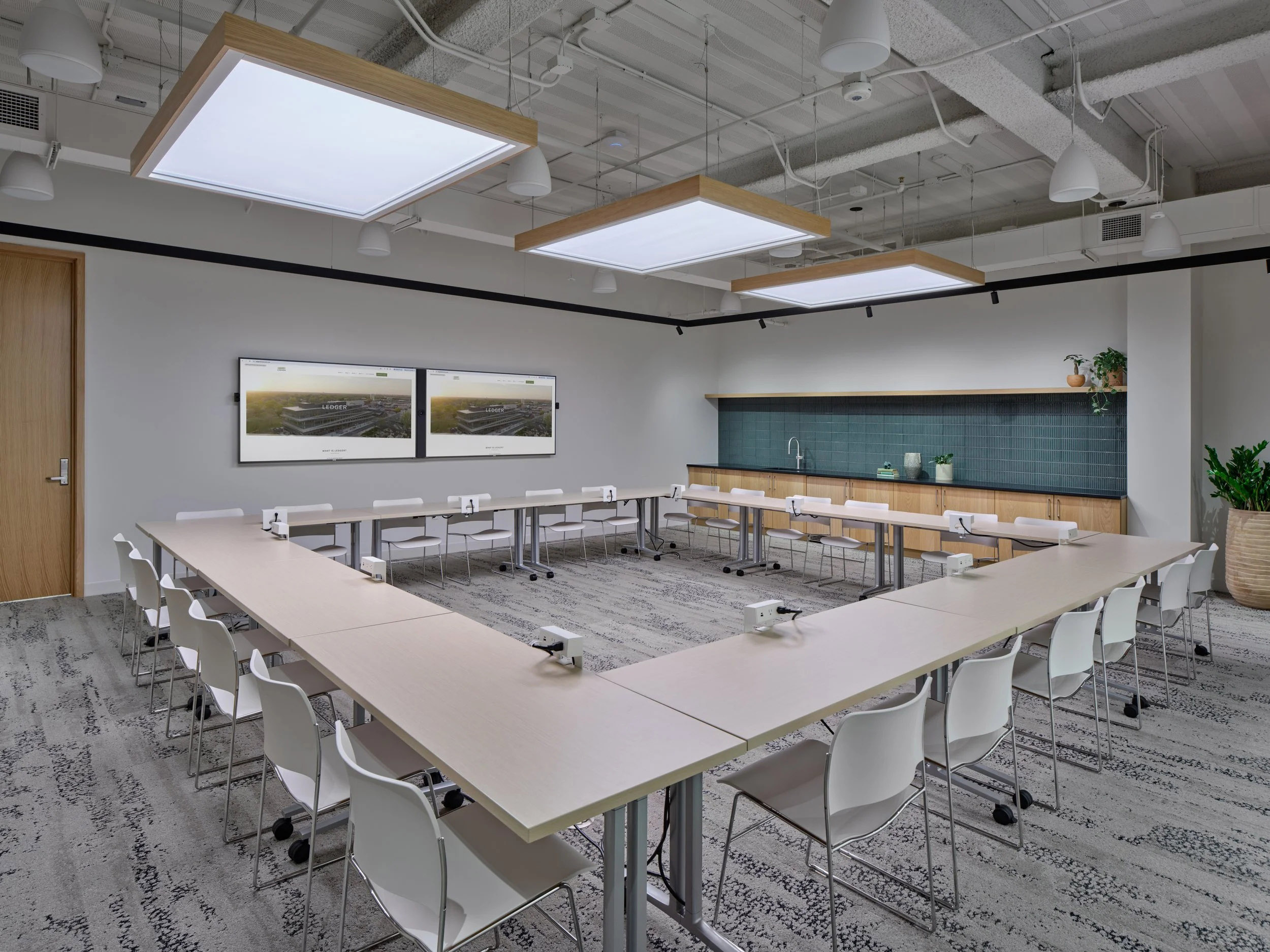 Callaghan Horiuchi设计事务所为Arvest(阿拉斯加联邦储蓄信用社)打造的位于本顿维尔Ledger大厦的办公空间,巧妙融合了亲生物设计与灵活可变的空间布局,在科技驱动的办公场景中重塑了现代办公生态,有效促进了团队协作、创新活力与员工福祉。