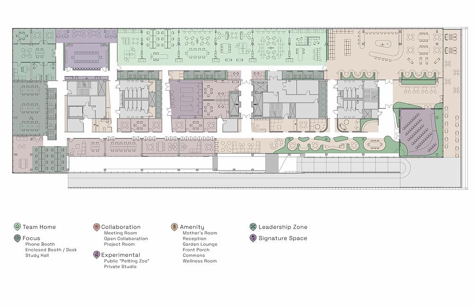 在以人为本的设计理念指引下,空间以健康福祉与亲自然原则为核心导向,通过系统化的设计策略构筑支持个体身心健康的办公环境,同时将人与阿肯色州西北部的广袤自然景观紧密相连。