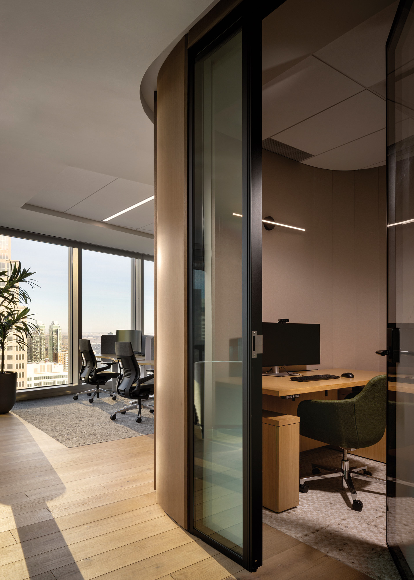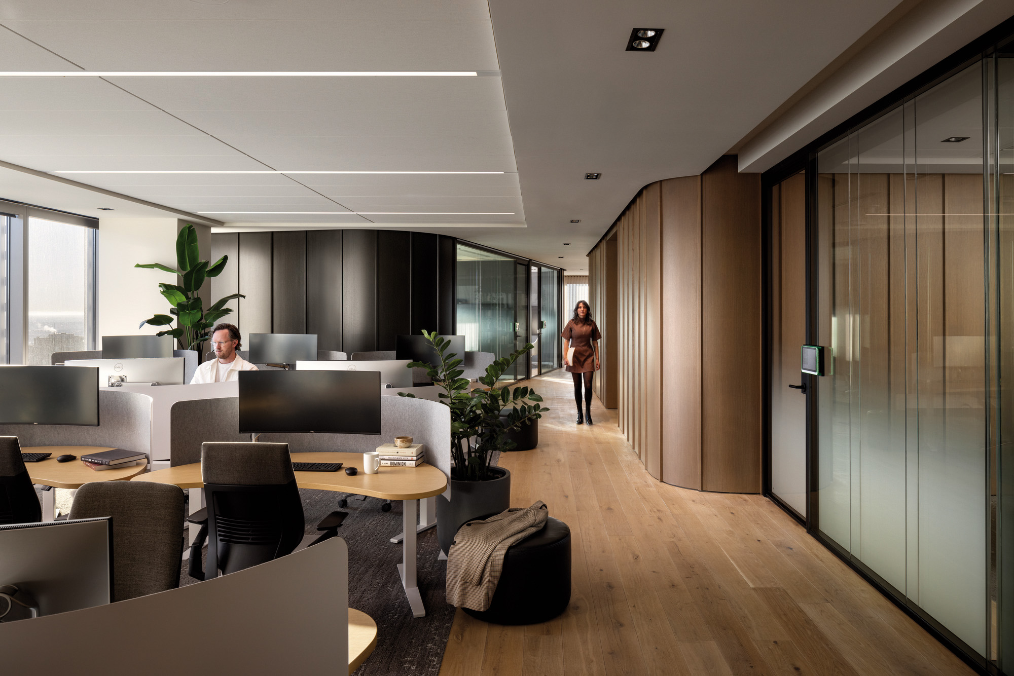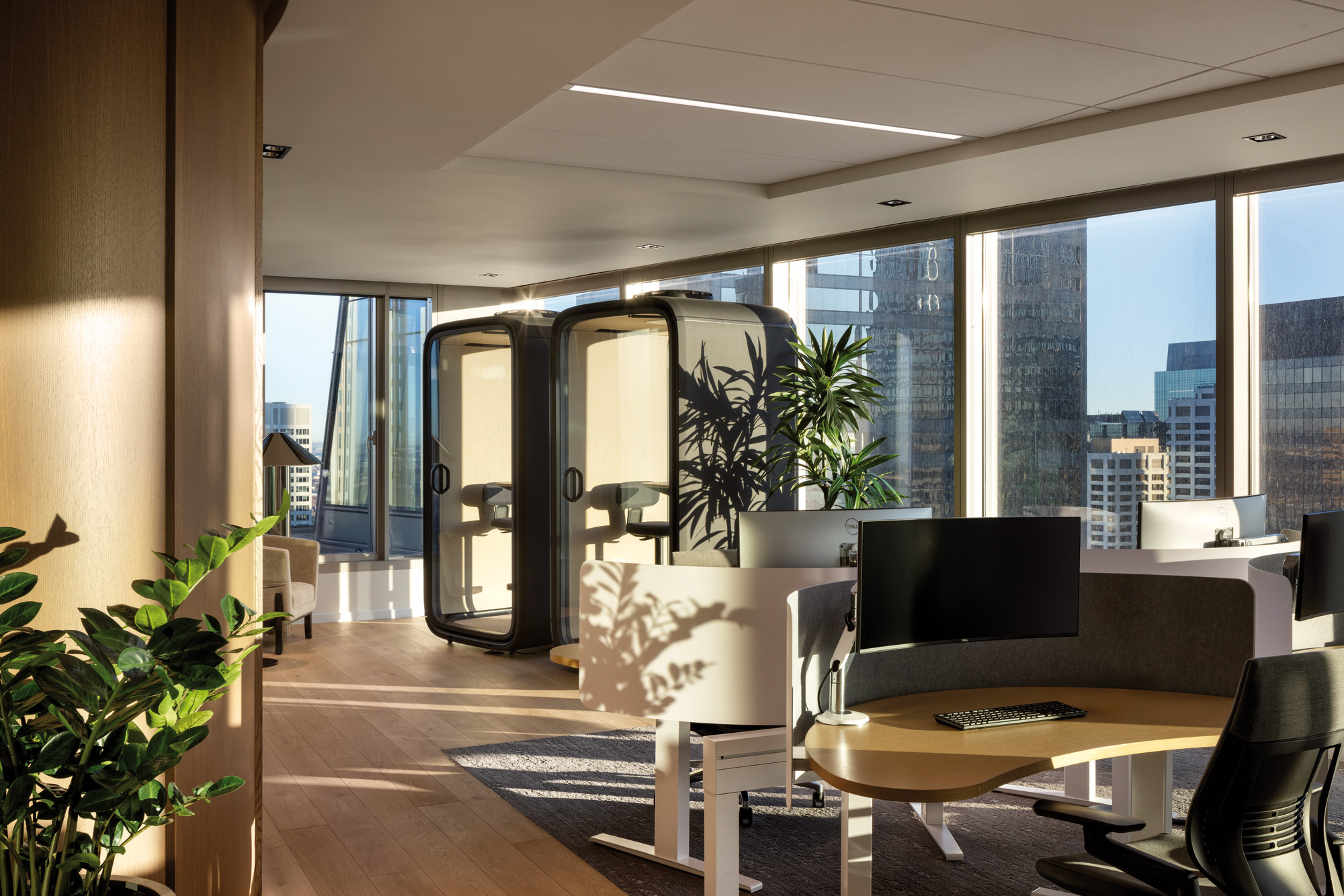 设计通过材质与照明选择优先兼顾包容性与神经多样性需求,有效降低感官过载。充沛的自然光线与柔和的层次照明相互平衡,营造宁静舒缓的环境。办公区域的声学处理最大限度减少干扰,为深度专注提供支持。