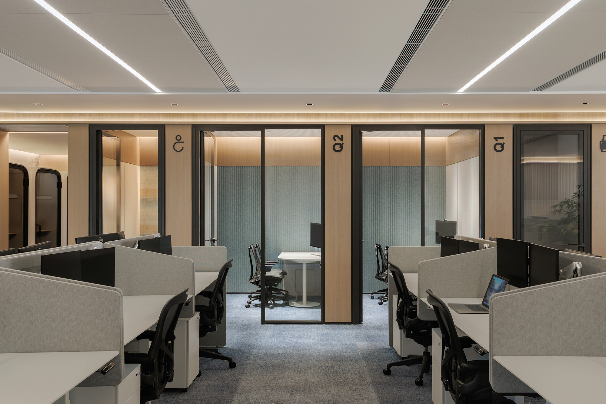 在技术层面,项目集成了智能照明控制与日光采集系统。这些功能不仅为员工提供了可适应且舒适的视觉环境,也显著提升了整体能源效率,在使用者福祉与可持续性能之间实现了无缝平衡。