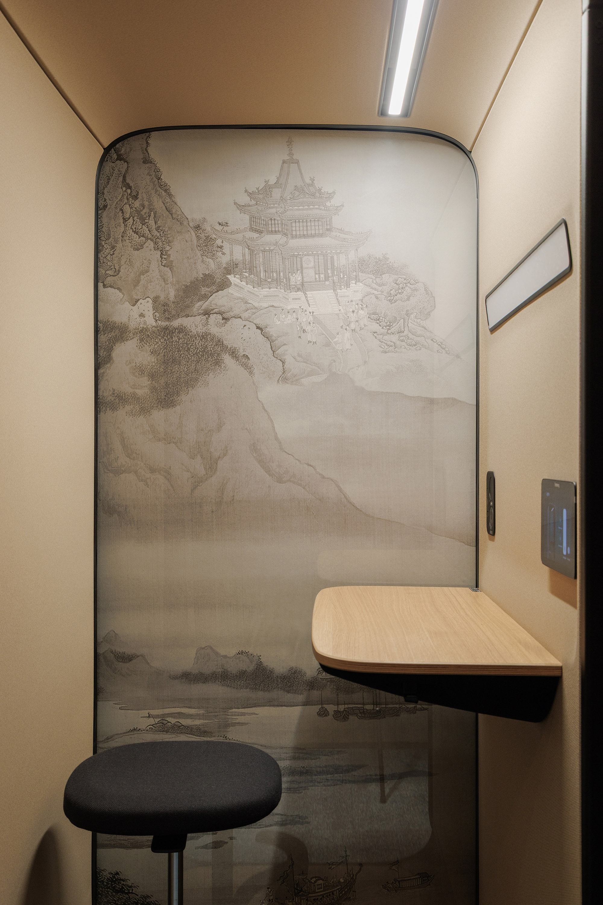 在其他区域,诸如灰砖的质感、工笔山水等中国传统元素,均通过当代视角被重新诠释。这种方式呈现出延续与创新之间微妙而富有意义的对话,映照出新加坡与中国共同的文化演进。