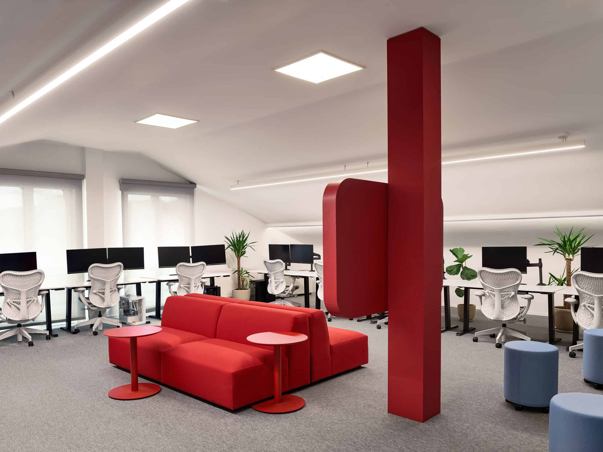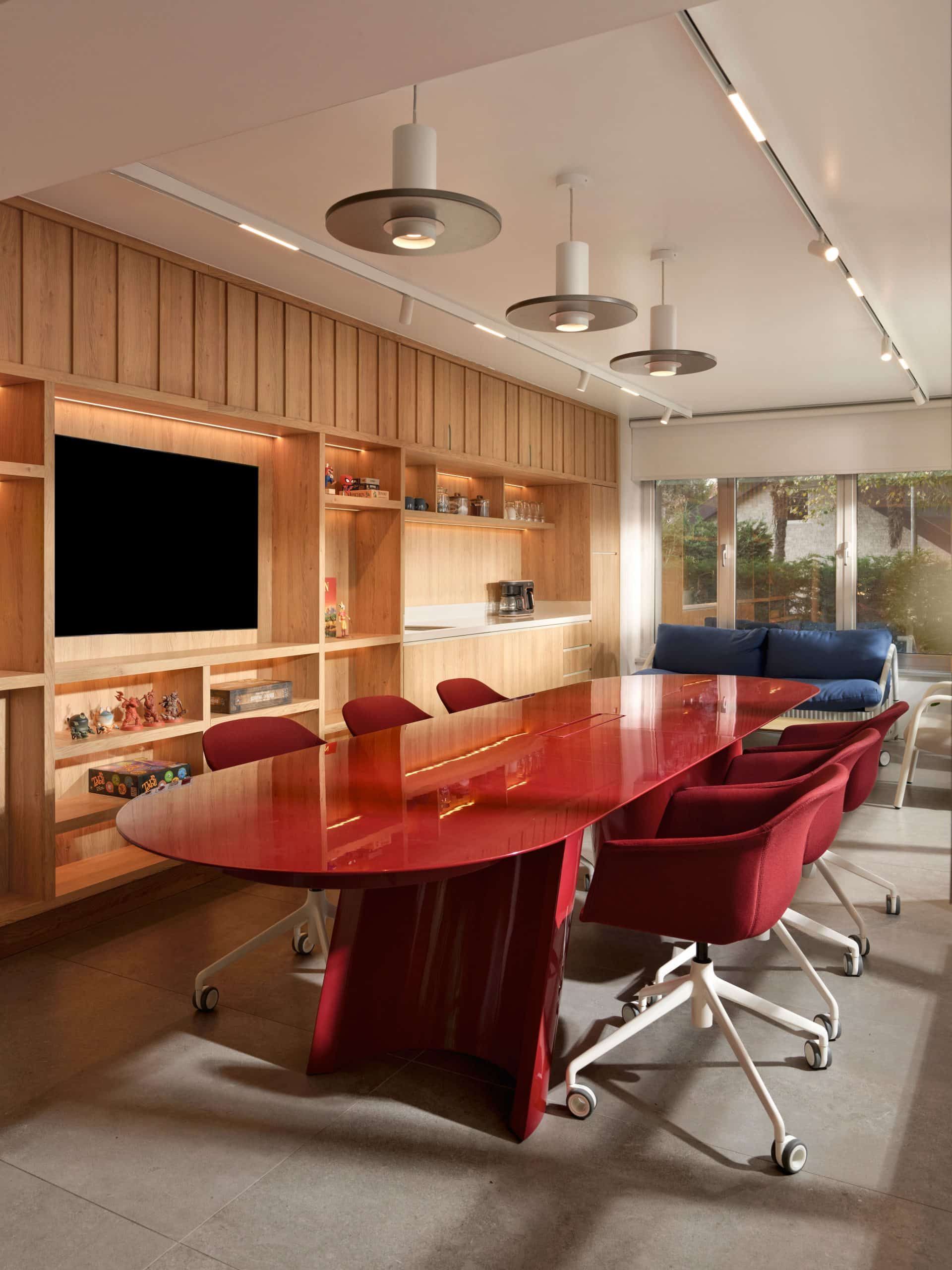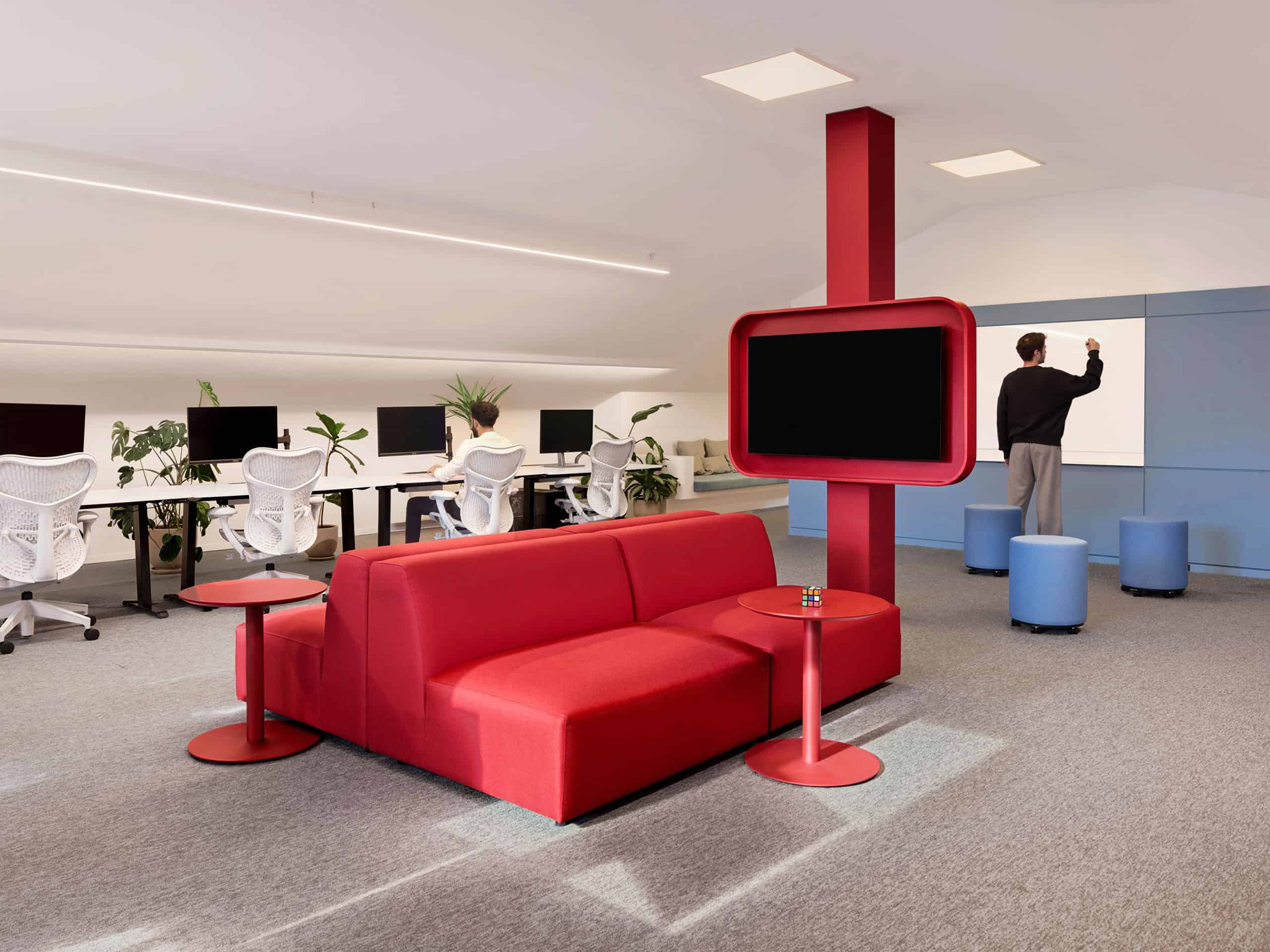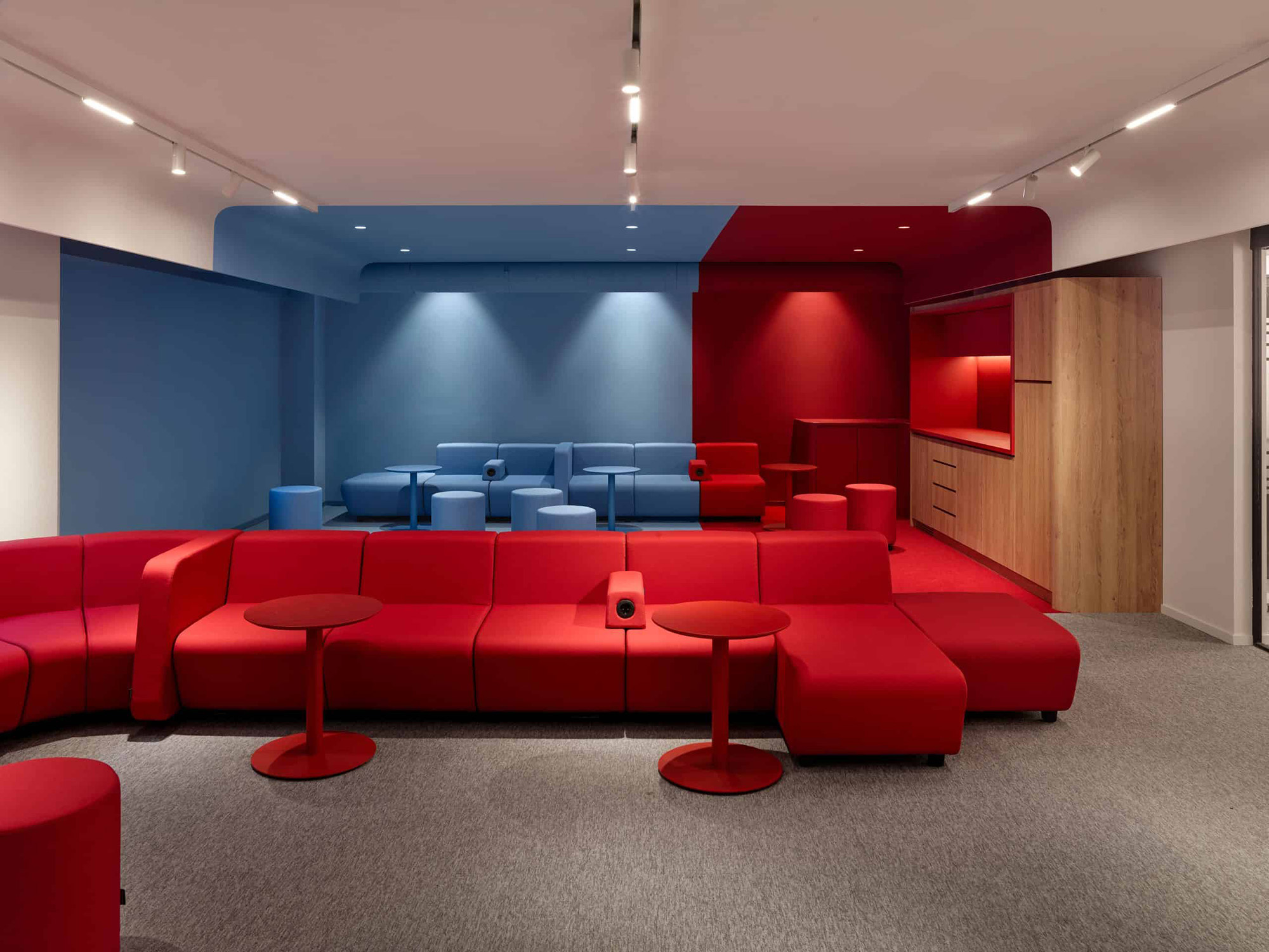 Grand Games是位于伊斯坦布尔莱文特的一家开发休闲益智类手机游戏的游戏公司,其游戏作品的视觉逻辑自然而然的成为了本次办公室设计的灵感来源。这种游戏设计风格以扁平色块、清晰轮廓和刻意简化的细节为特征,优先考虑可识别性、等级结构和即时可读性,而非追求写实或装饰性。