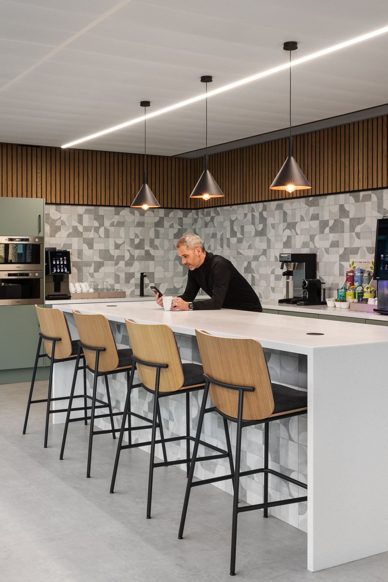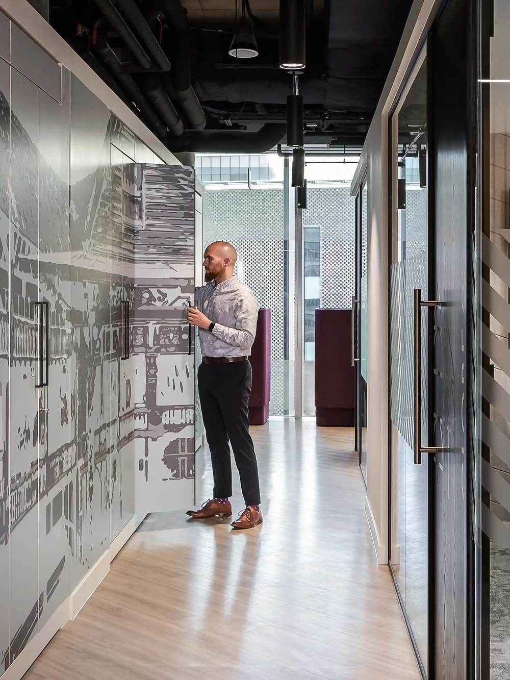 装修工程的每个环节都经过精心设计与精准实施,以构建统一高效的工作场所。这包括定制细木工艺、一体化家具、特色照明系统、声学解决方案以及全面的机电基础设施,所有系统均由高科技门禁系统支撑,全面满足运营需求。