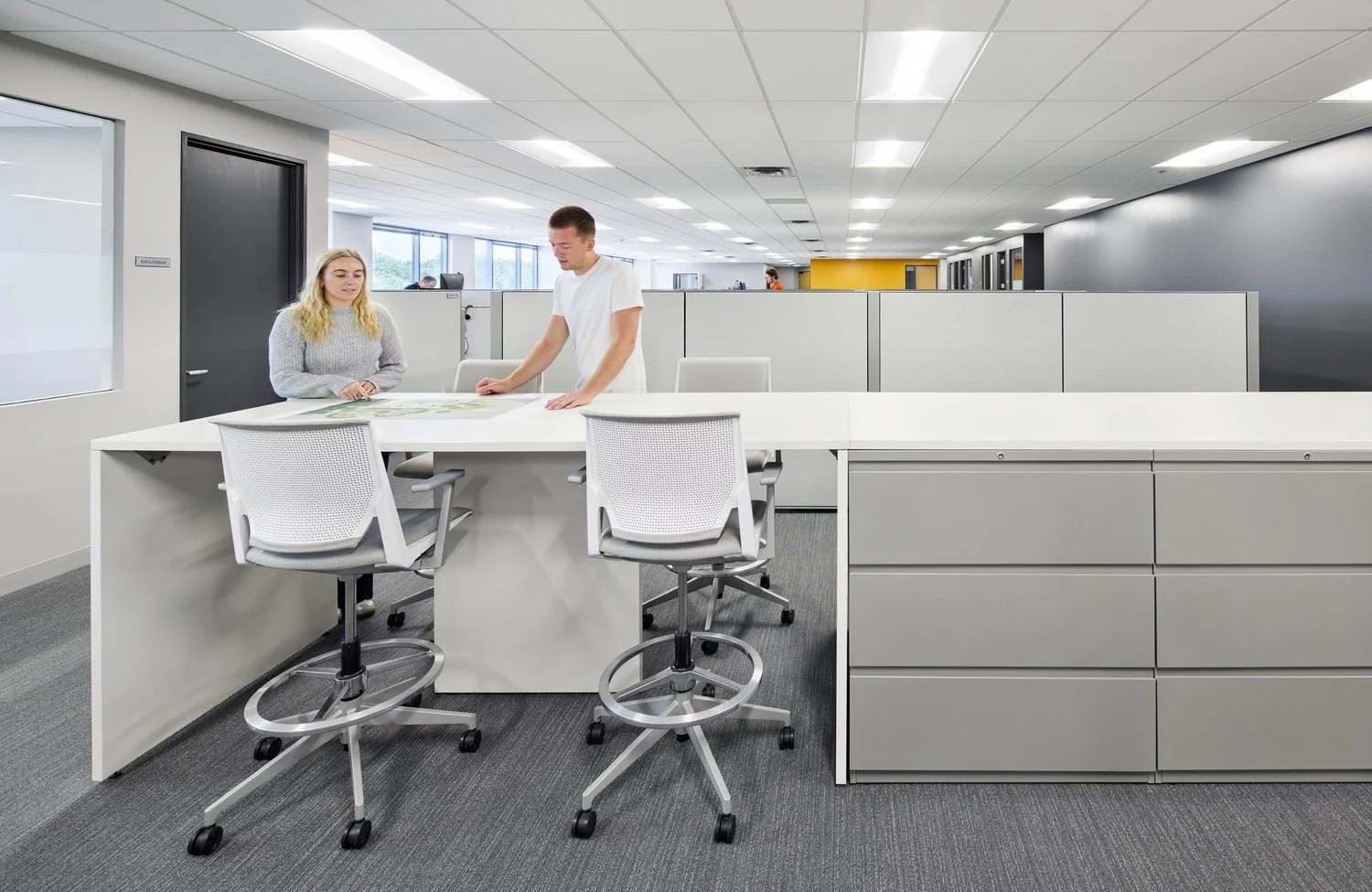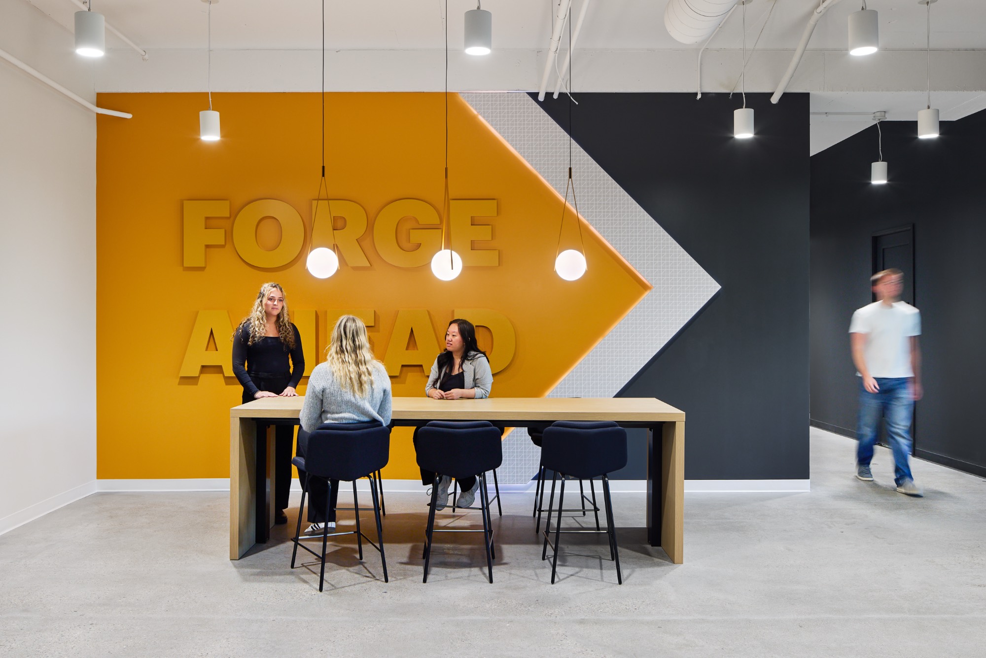 Studio BV创始人兼首席执行官Betsy Vohs表示:“此次设计的核心挑战,是为办公空间打造一个全新的叙事主题——既要契合WSB充满活力的品牌形象,又要体现他们在市政、交通、环境及公共工程领域的前瞻理念。原有空间已无法展现他们当下的特质:创新、协作、聚焦社区。我们以‘创意基础设施’为核心理念重塑空间,正如WSB的工程服务支撑着社区发展,这个办公场所也将成为支撑工作者实现价值的平台。”