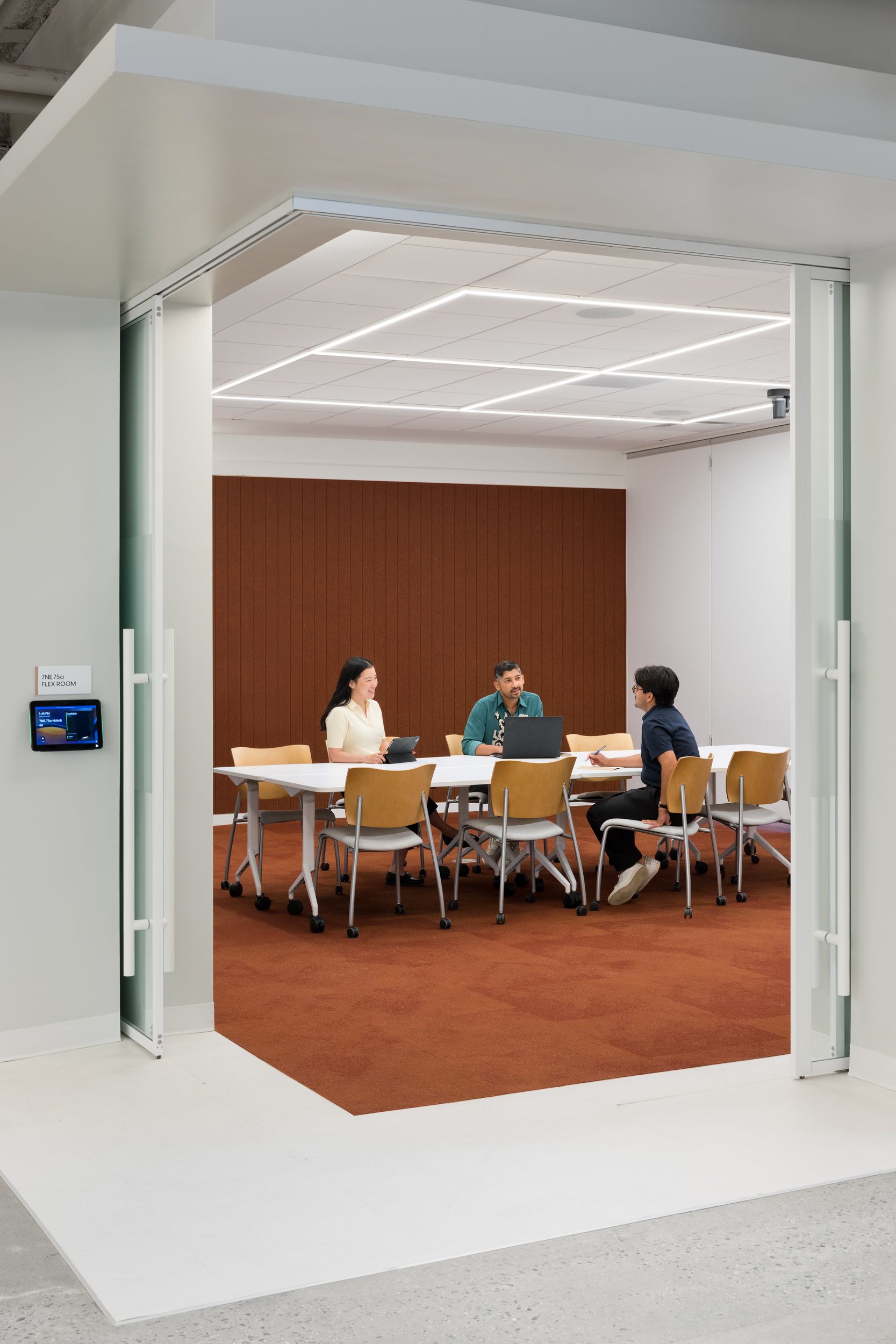 每个阶段都有独特的空间条件作为支撑。发现空间拥抱“混乱感”,鼓励与同事和产品进行有趣的、灵活且非正式的互动,以激发新想法。定义区域则是更安静、结构更清晰的环境,支持想法的深化、专注工作和高效产出。测试空间旨在体现“人人都是消费者”的理念,让团队能够在此展示成果并主动征求反馈。最后,交付区域是呈现品牌传承与新产品的精致空间,配备互动科技与精心设计的体验。
