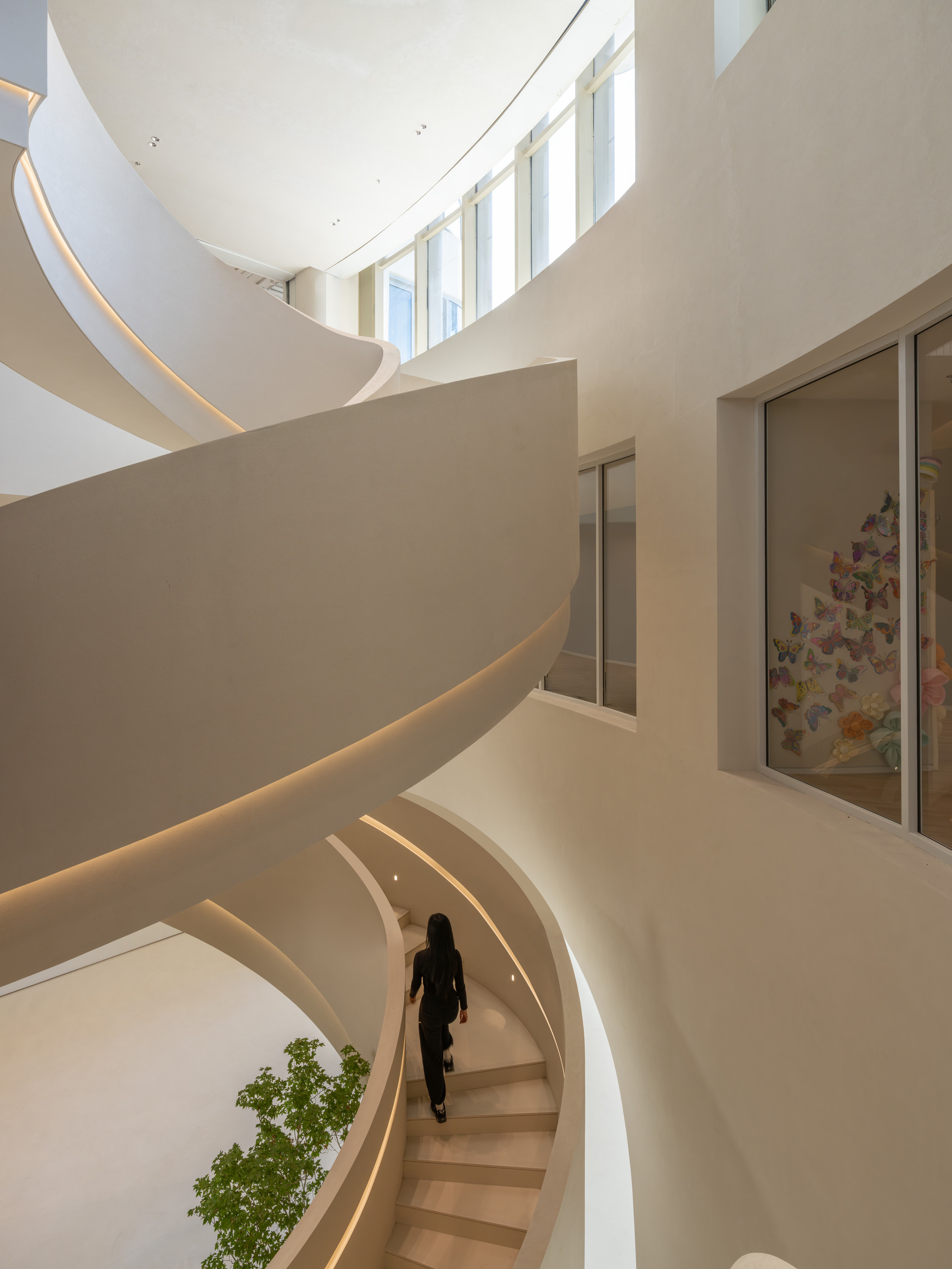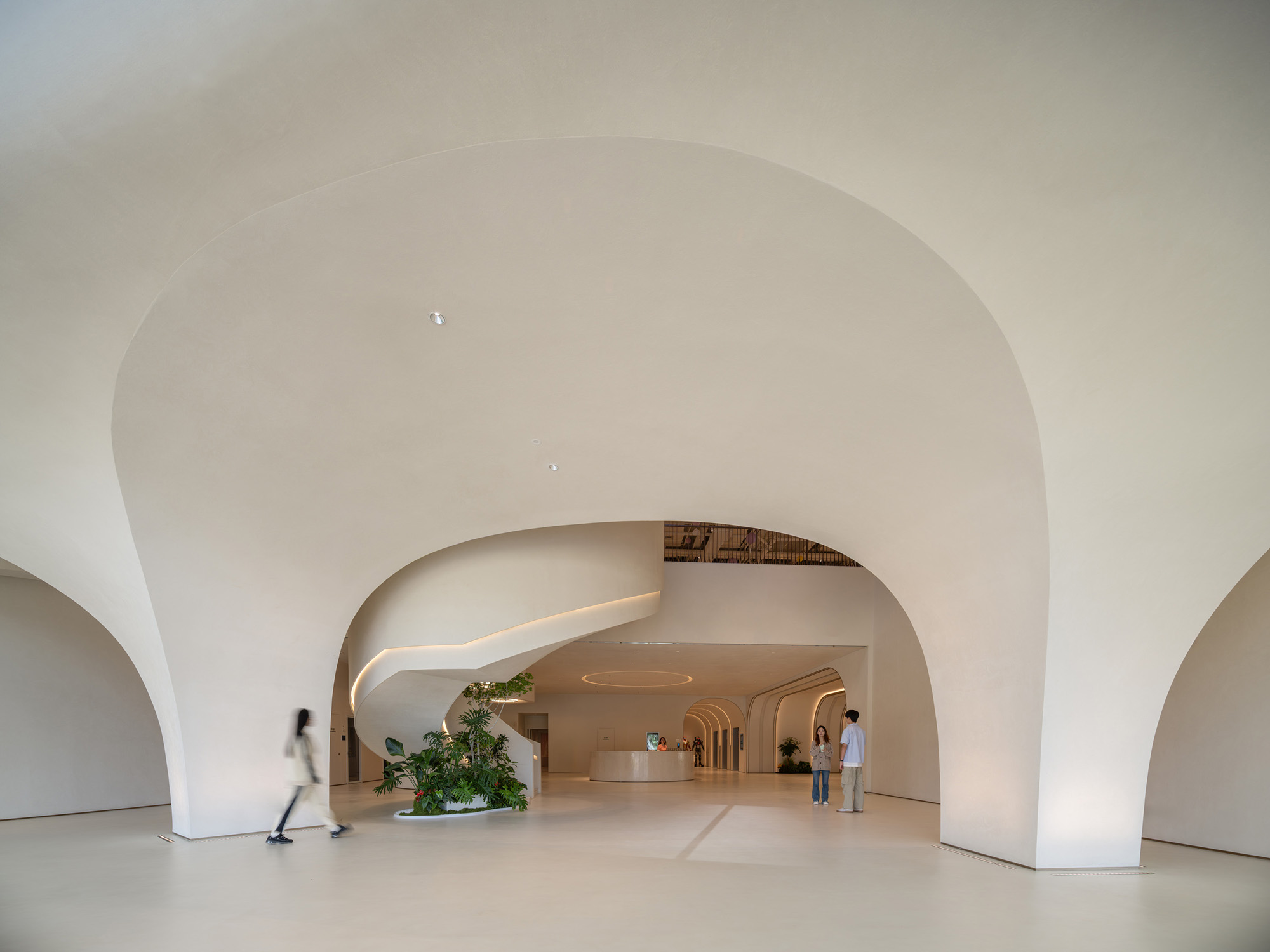 一层大堂以“兔子洞”为叙事起点,打破日常逻辑,引导访客暂时脱离现实,进入奇异而富有仪式感的世界。形态化结构、沉浸式动线与企业展示共同营造出强烈的到达体验。