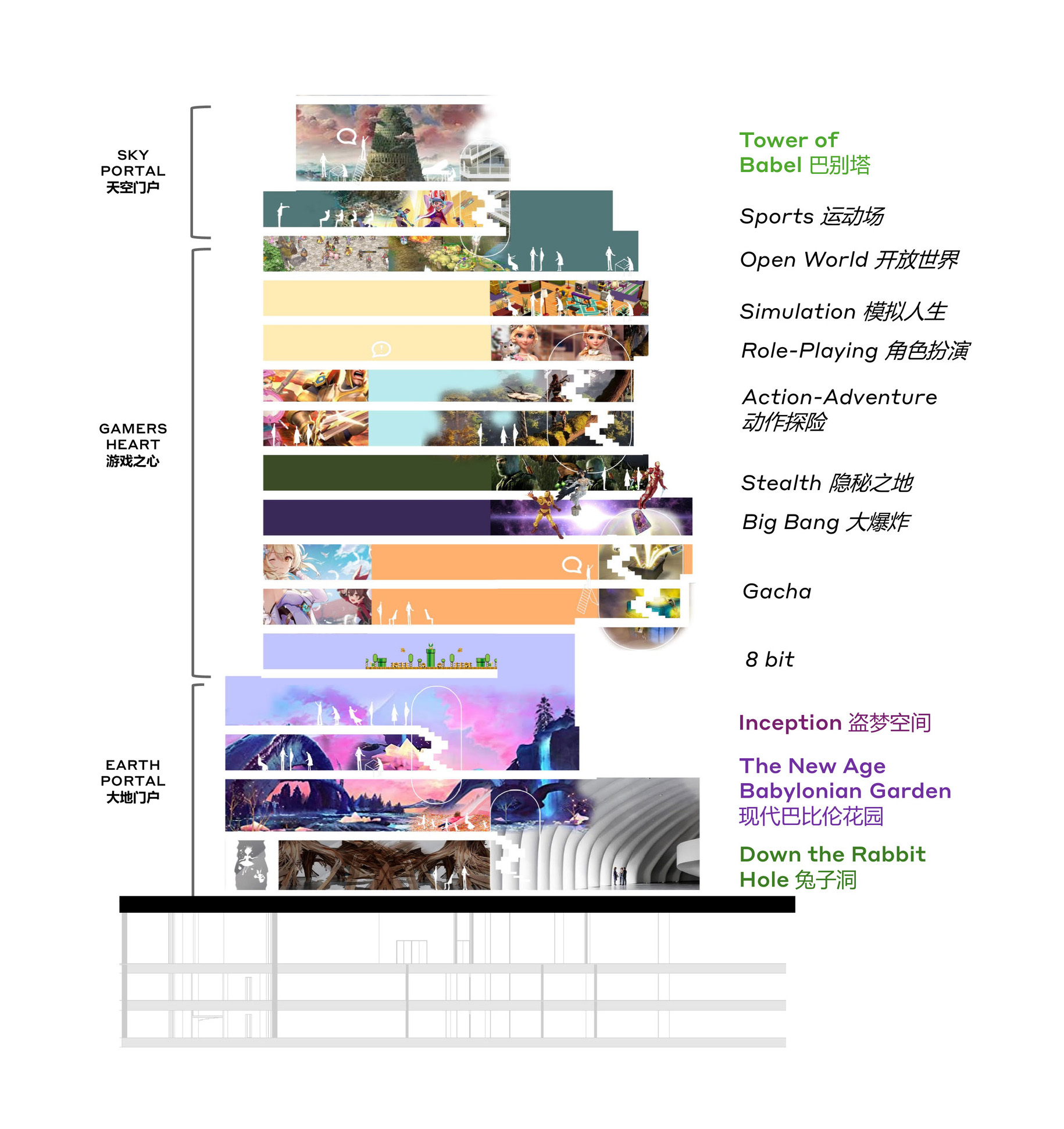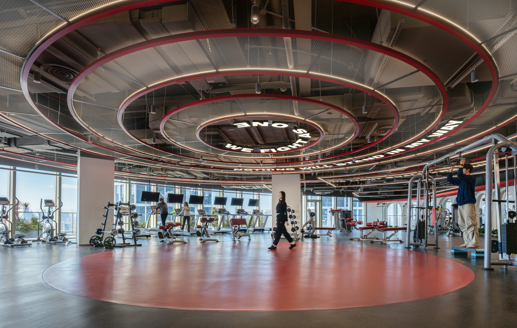 高区员工健身中心与多功能空间,则通过“星际斗技场”“拉普塔之门”等主题,将运动、休闲与未来想象融为一体,延续整体叙事的张力。