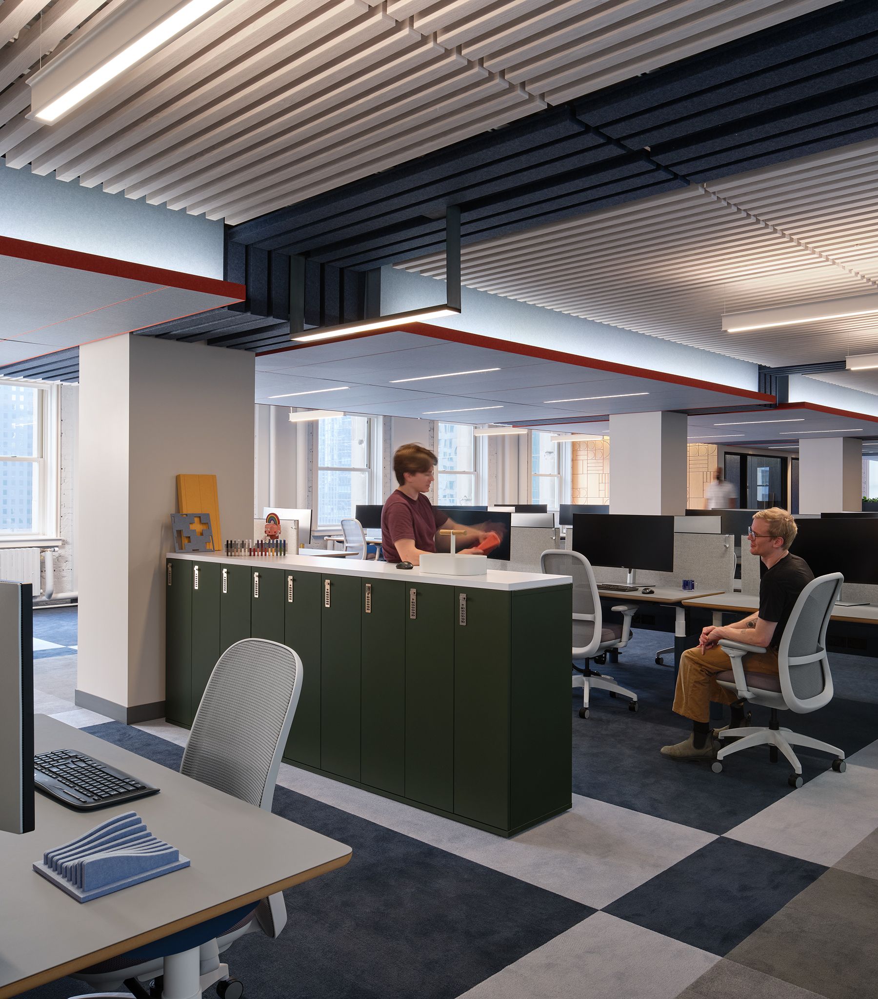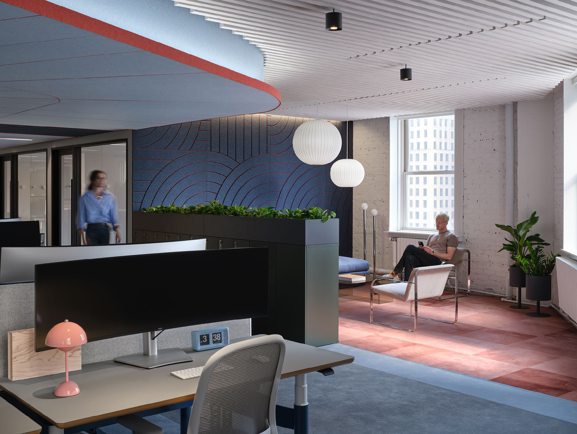 总部位于芝加哥的声学专家Turf,近日在著名商业地标The Mart启用了全新总部,全方位展现其多元的美学风格、应用场景与产品性能。该项目由CannonDesign负责人、资深设计总监Elizabeth Von Lehe倾力打造,集办公空间与原型打样车间(配备CNC数控机床)于一体,并设有370平方米的展厅。