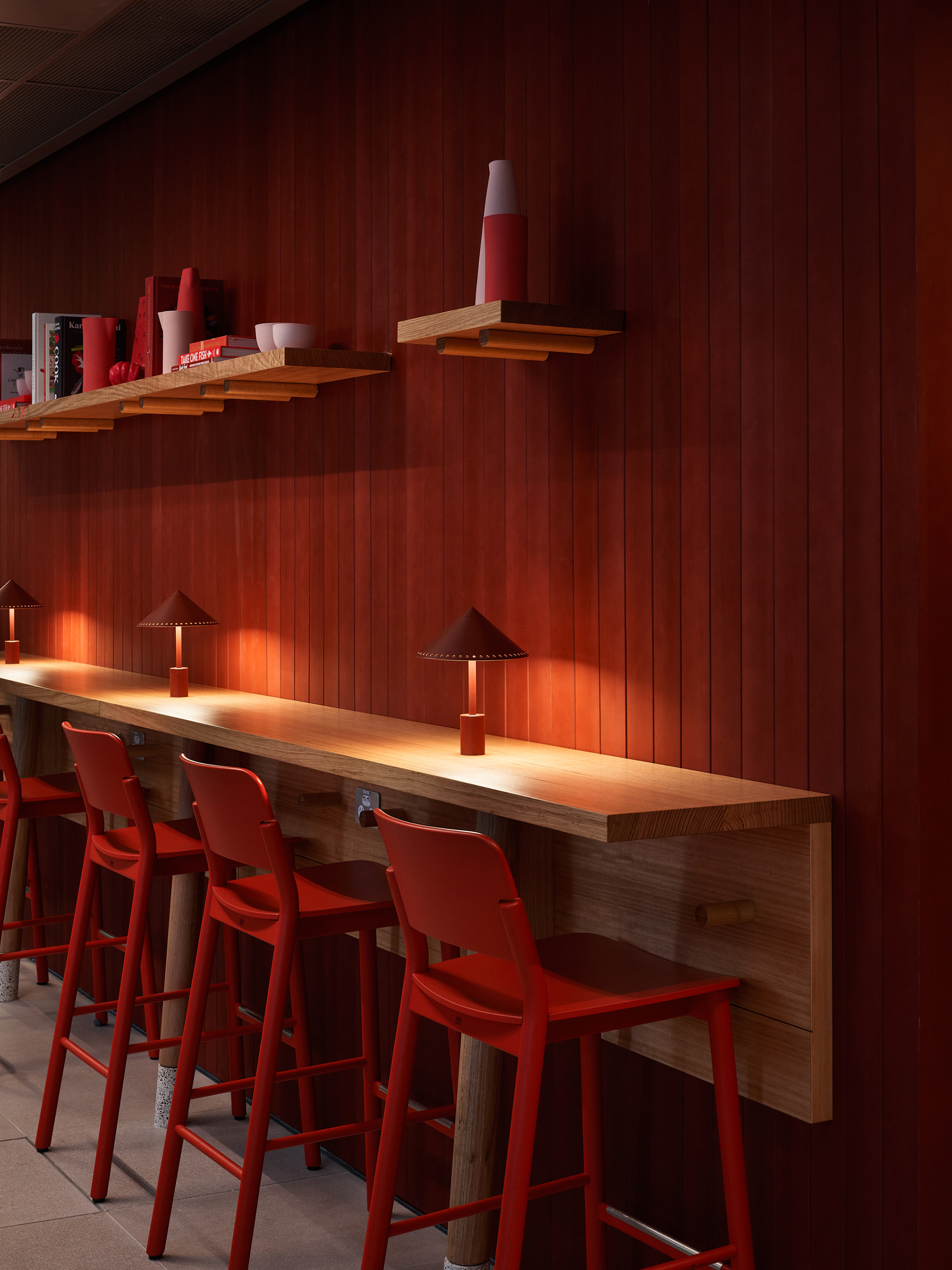 与Hecker Guthrie设计事务所合作打造的一整层空间,专为社交款待而设,设有美食集市、用餐区和一间咖啡馆,旨在促进员工交流,营造社区归属感。