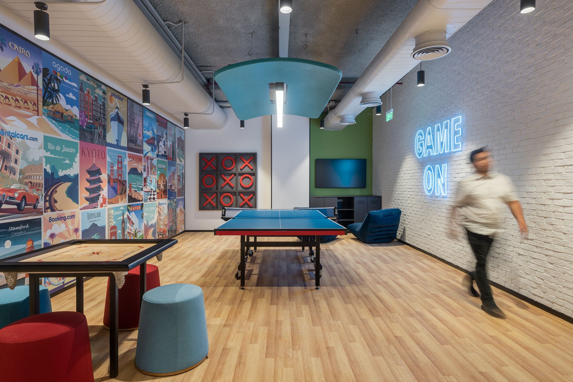 想象一下,每天上班就像环游世界!Booking Holdings卓越中心的设计灵感源自旅行的力量:员工每天在七个不同的区域中穿梭——每个区域代表一个大洲。从非洲的纹理到亚洲的色彩,全球文化的精髓被巧妙地融入工作空间的每一个角落。这不仅是一次视觉盛宴,更是一场沉浸式的文化体验,完美契合Booking Holdings“探索与发现”的品牌理念。